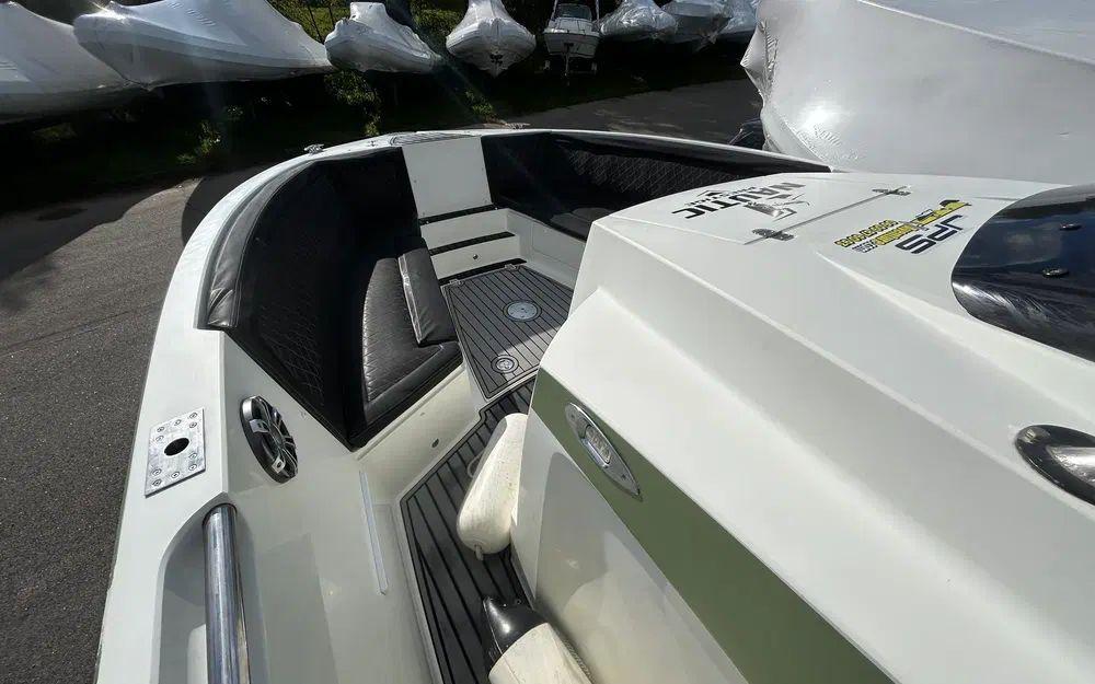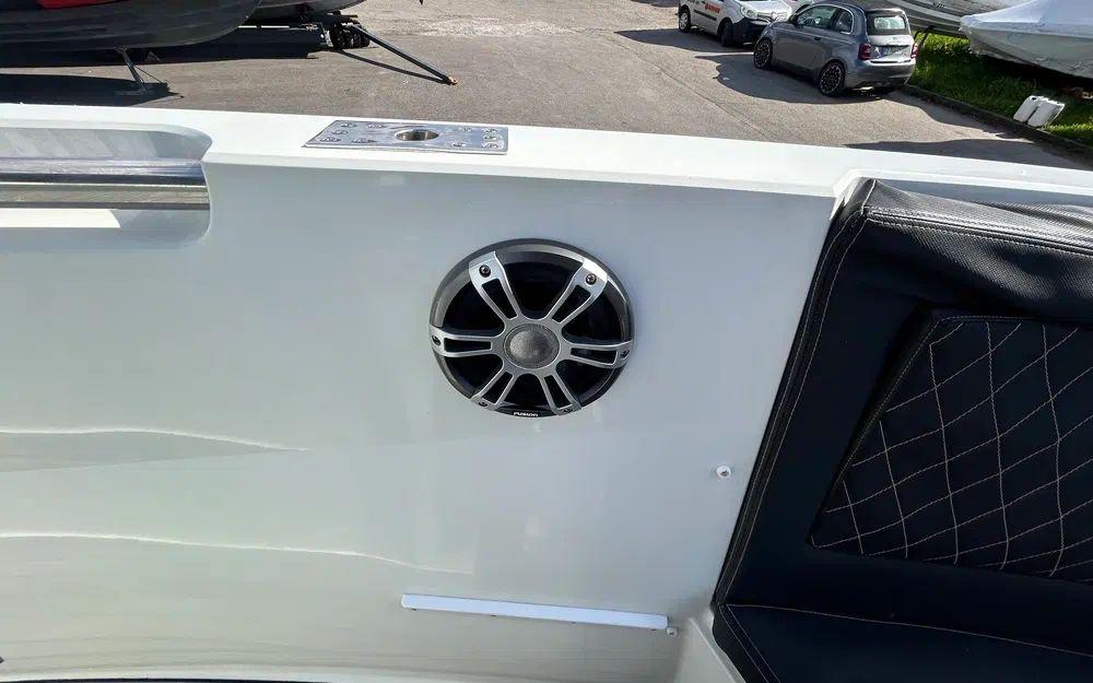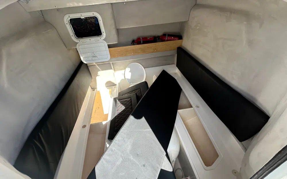 La console centrale intègre une cabine permettant un couchage d’appoint ainsi qu’un WC, apportant un véritable confort à bord pour les navigations à la journée comme sur plusieurs jours. La plateforme arrière facilite les accès à l’eau et renforce l’agrément global du bateau.