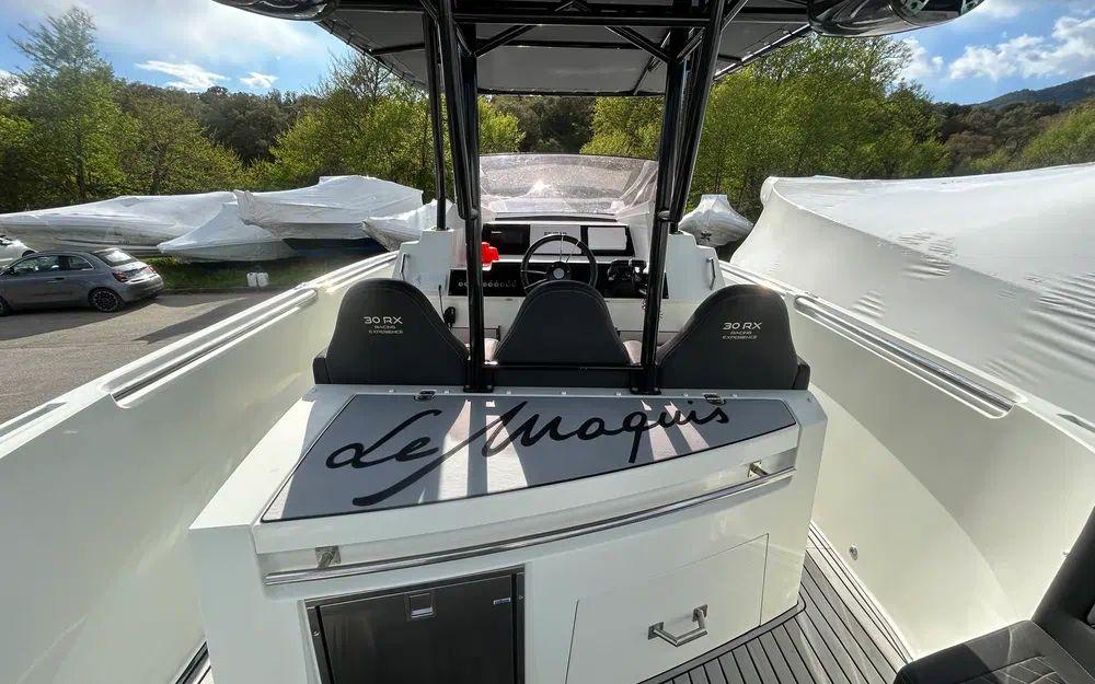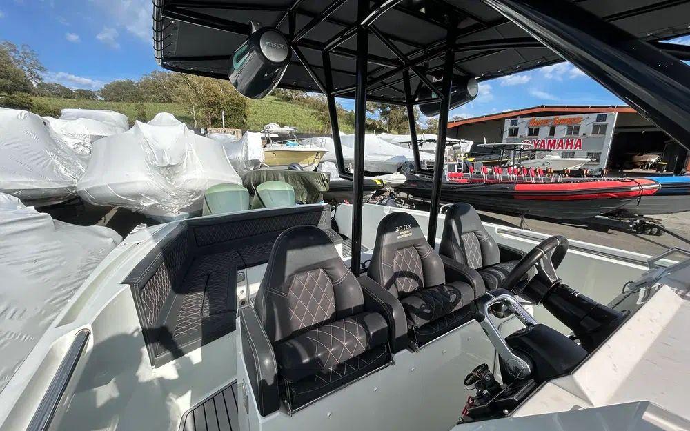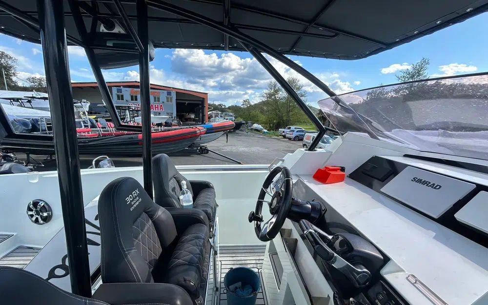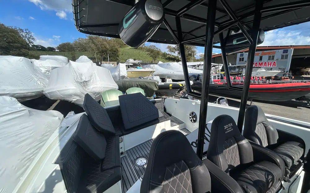 Côté motorisation, ce RX 30 est équipé de deux Yamaha de 300 chevaux, totalisant 1450 heures. Cette configuration assure des performances solides, une excellente maniabilité et une navigation sécurisante. L’entretien a été suivi avec sérieux, garantissant une utilisation sereine.