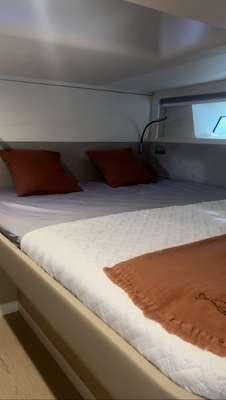 Sous le pont, vous retrouverez une cabine avec un grand lit double, une seconde cabine avec deux lits simples et une salle de bain avec toilette.