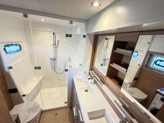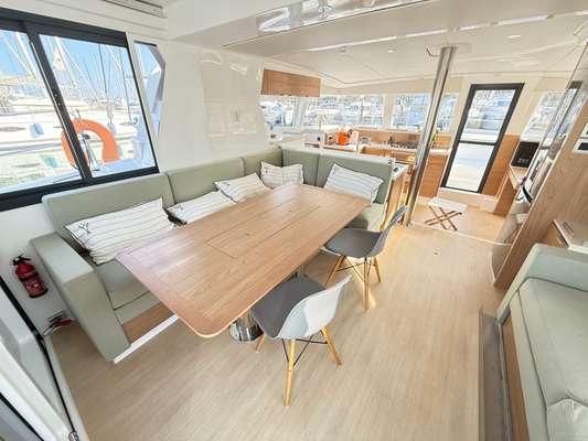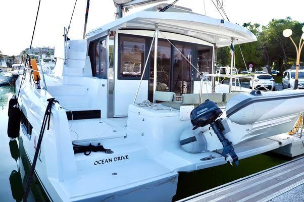 Ce catamaran Bali est équipé pour un confort optimal en navigation. Il comprend une grand' voile lattée et un solent renforcé en Dacron, un accastillage complet pour un Code 0 avec winch supplémentaire. Propulsé par deux moteurs Nanni de 50 CV, il dispose aussi d'un groupe électrogène, de panneaux solaires (400W), et d'une climatisation réversible. Les équipements incluent un dessalinisateur, des WC électriques, lave-vaisselle, et lave-linge. Côté loisirs, il propose 2 espaces bain de soleil, une plancha à gaz, et un système électronique Raymarine de pointe. Nous garantissons la place de port.