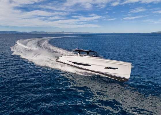 Le bateau navigue en douceur à travers les vagues et le pont reste sec grâce à la coque en V profond, à l’équilibre optimal des poids, au centre de gravité bas (Utilisation de la fibre de carbone, constrution sous vide en sandwich infusé) et à la longueur de la ligne de flottaison de 60 pieds. **LUXE EXCLUSIF ET PLAISIR AU MOUILLAGE**