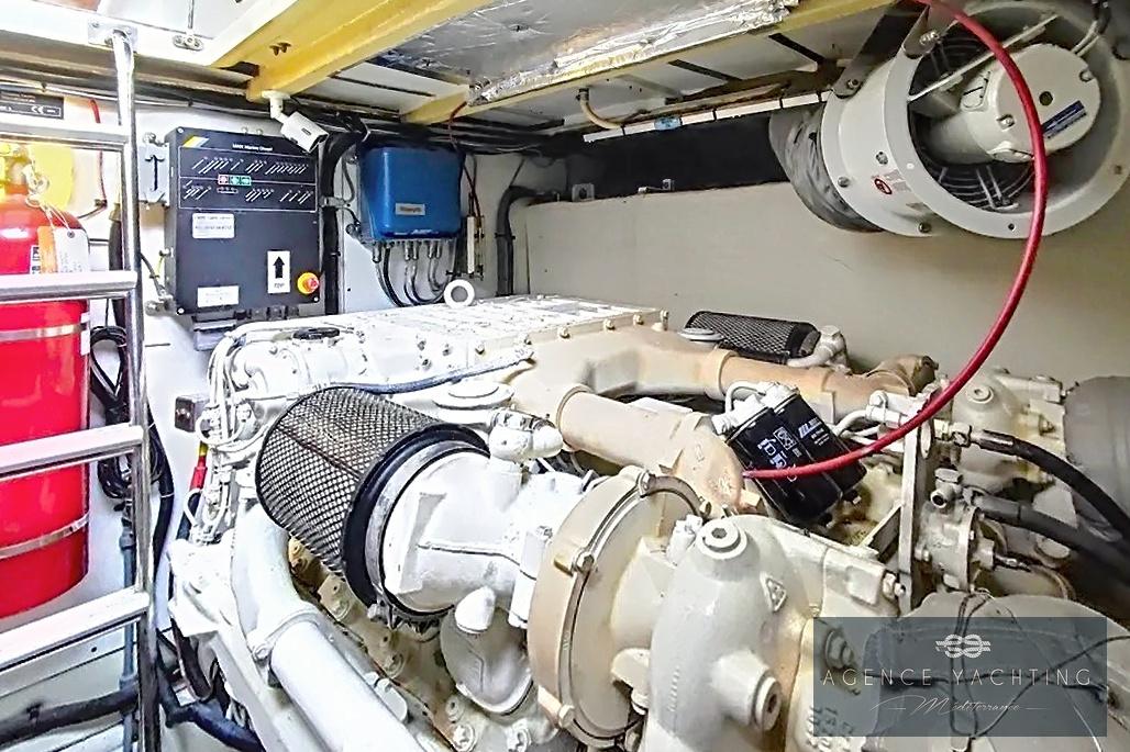 Motorisé par deux puissants moteurs V8 MAN de 800 chevaux chacun, totalisant environ 1 200 heures de fonctionnement, ce PRINCESS V58 offre un parfait équilibre entre performances, fiabilité et confort de croisière. Une motorisation reconnue pour sa robustesse, parfaitement adaptée à un programme de navigation soutenu, aussi bien en croisière rapide qu’en navigation longue distance.