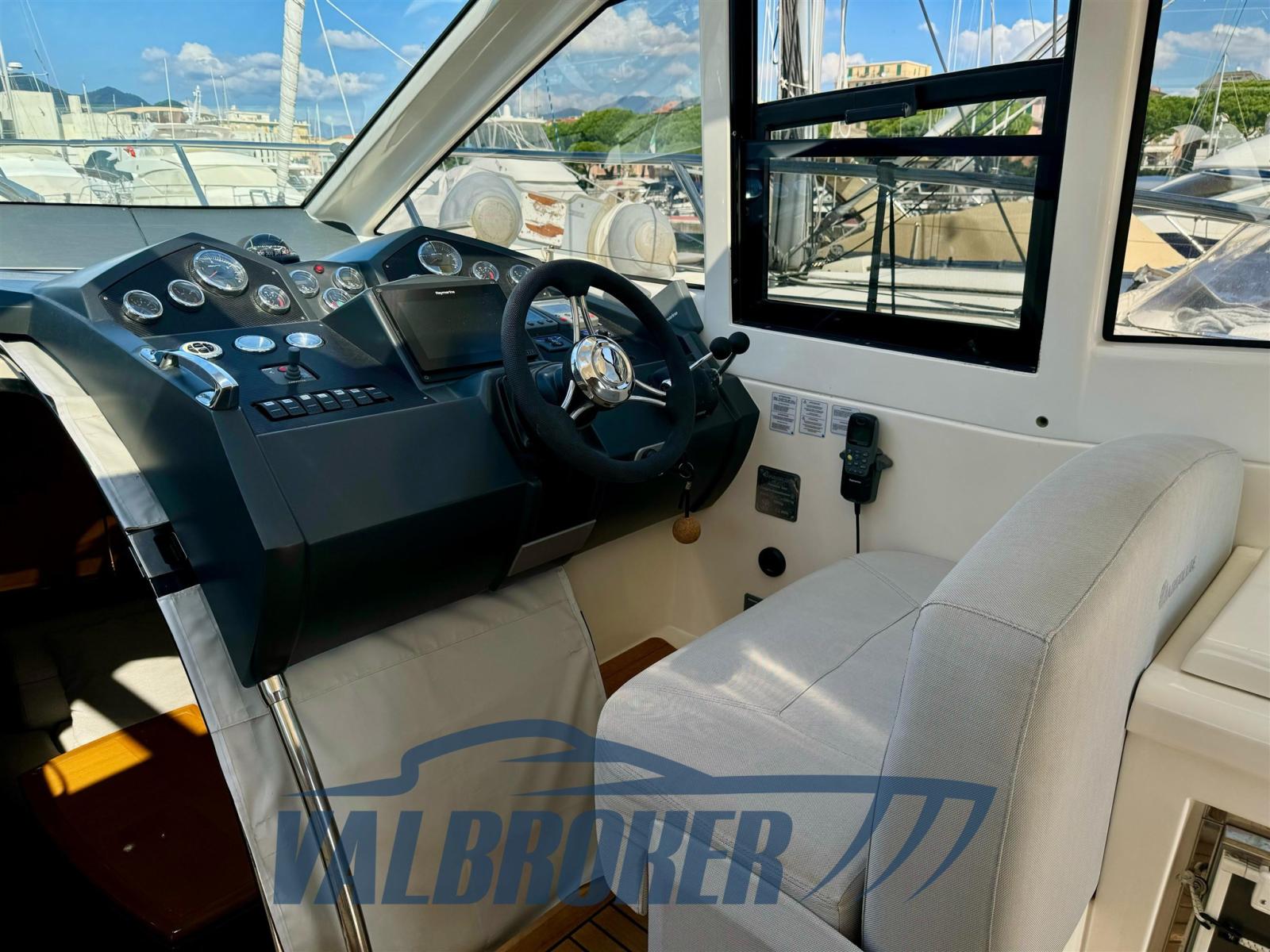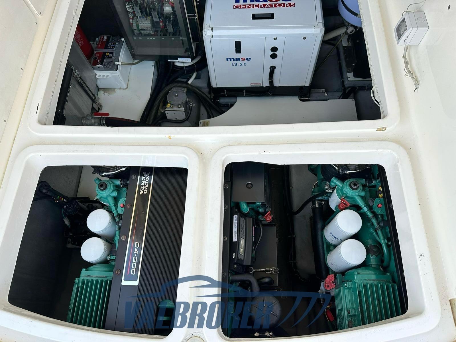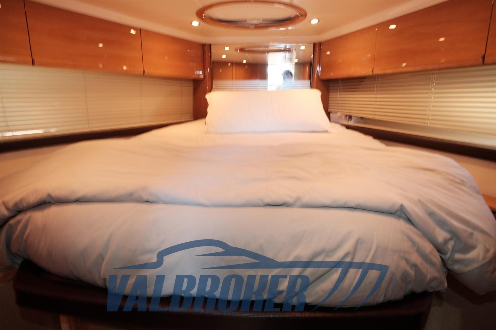 Magnifique toit rigide avec des lignes élégantes et très sportives. Enveloppé sur les côtés et sur le tableau de bord. Sous le pont, nous trouvons la cabine du propriétaire à l’avant, une cabine d’amis avec des lits plats et deux salles de bains. EN OPTION : générateur, climatisation, toit rigide électro-hydraulique, garage hydraulique, propulseur à proue. Nouveaux coussins et matelas internes. Sol de saloon en teck avec joints blancs !!
