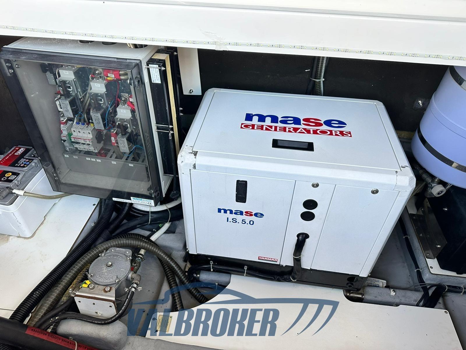 Eau sous pression, 5 Batteries, Douche de cockpit, Propulseur d'étrave (max power), Garage à annexe (idraulico), Hard top (elettro-idraulico), Passerelle (idraulica a scomparsa Besenzoni), Plateforme arrière (teak), Guindeau électrique, Echelle de bain, table de cockpit (teak).