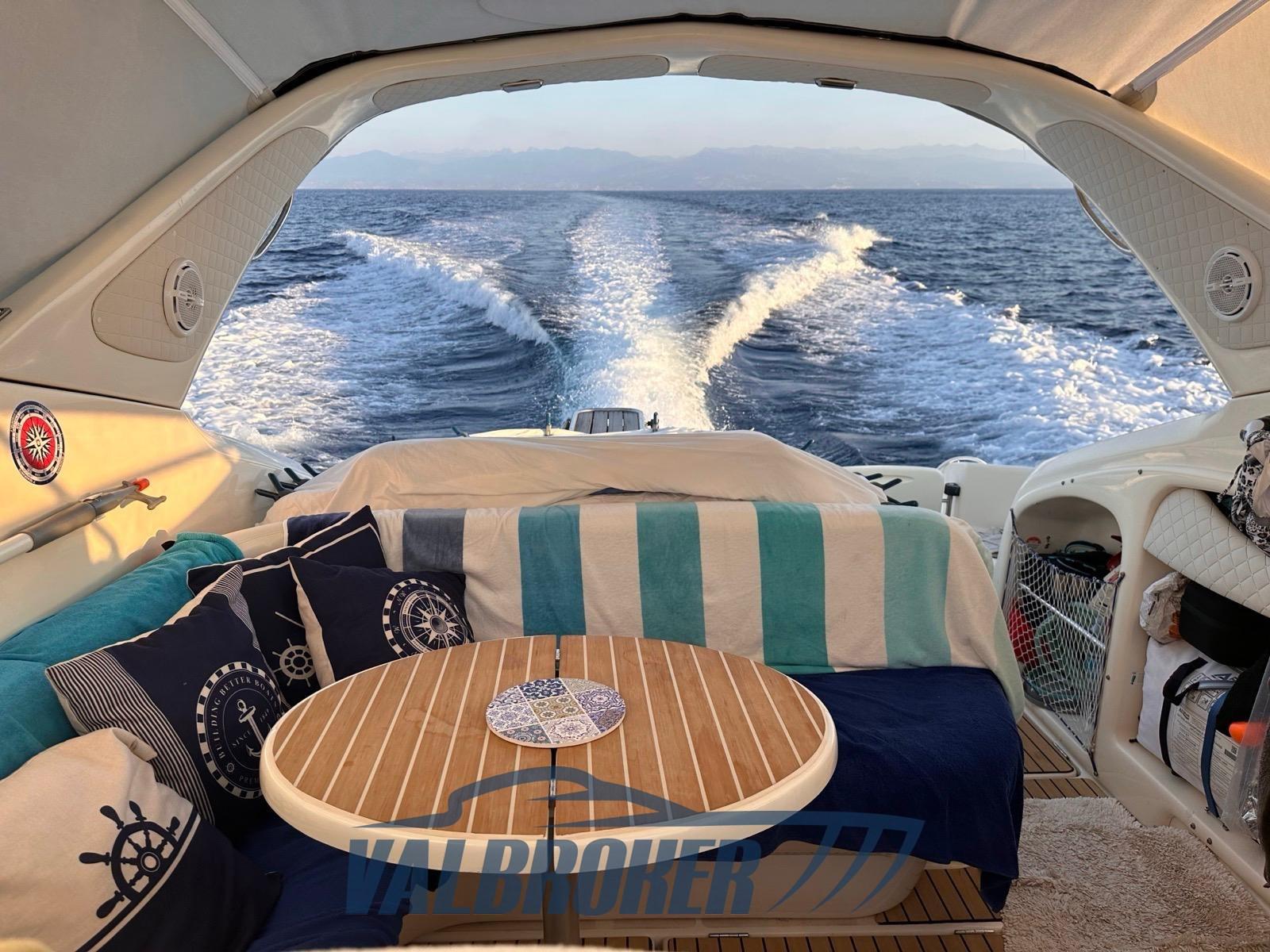 Cranchi Endurance 39 propulsé par . 2x KAD 42 231 CV Volvo Penta 6 cylindres sterndrive turbo diesel. Révision toujours effectuée par un Volvo Penta officiel. Dinette convertible à l’avant, cabine arrière et toilettes séparées.