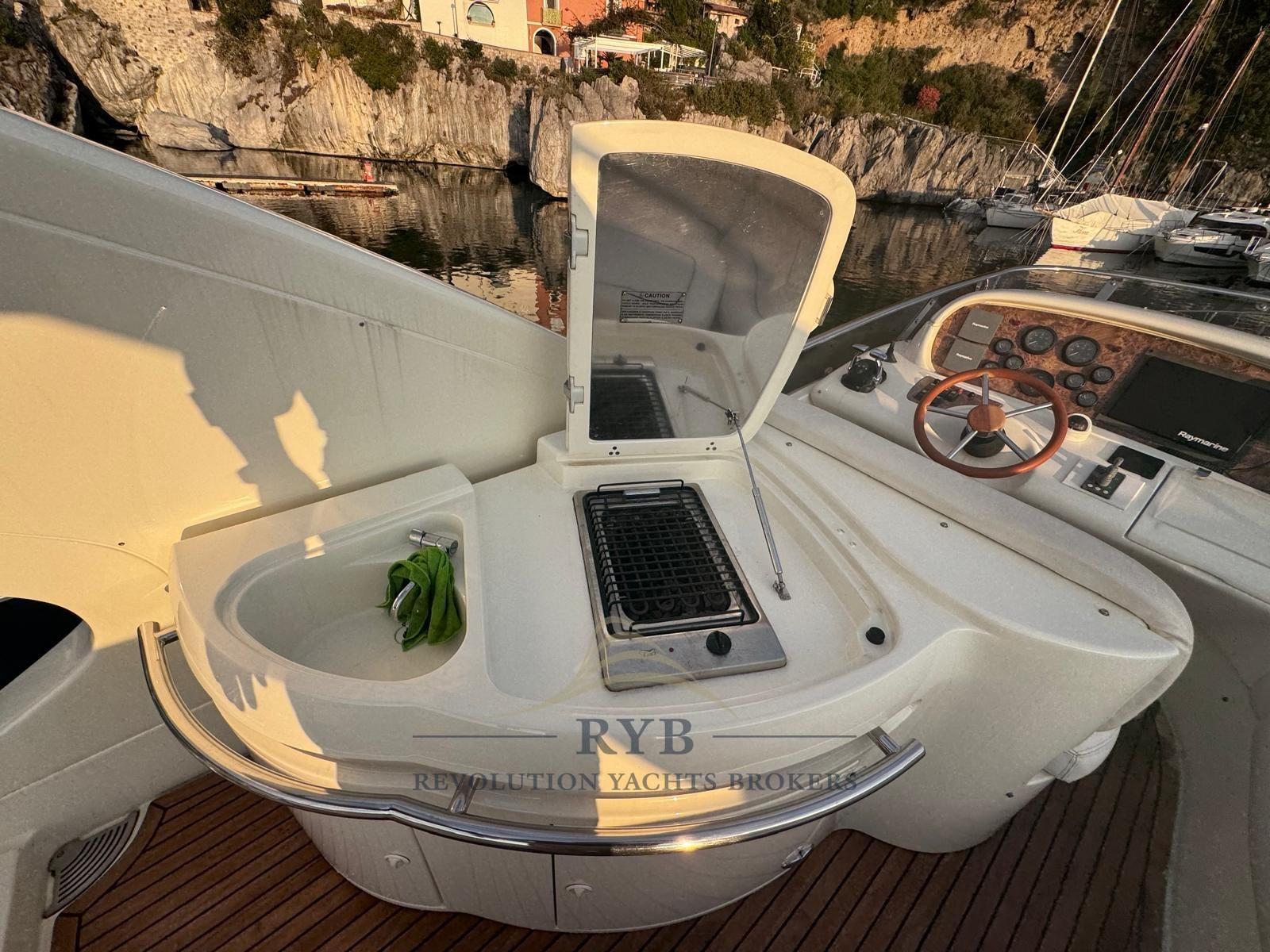 Eau sous pression, Passavant en teck, Douche de cockpit, Double barre à roue, Phare de poursuite, Flaps hydrauliques, Éclairage de courtoisie, Passerelle (OPACMARE), Plateforme arrière, Porte latérale, Cockpit en teck, Prise de quai, Répétiteur électronique, Rollbar, Guindeau électrique, Echelle de bain, table de cockpit, Corne, Winch électrique arrière, Winch électrique avant.