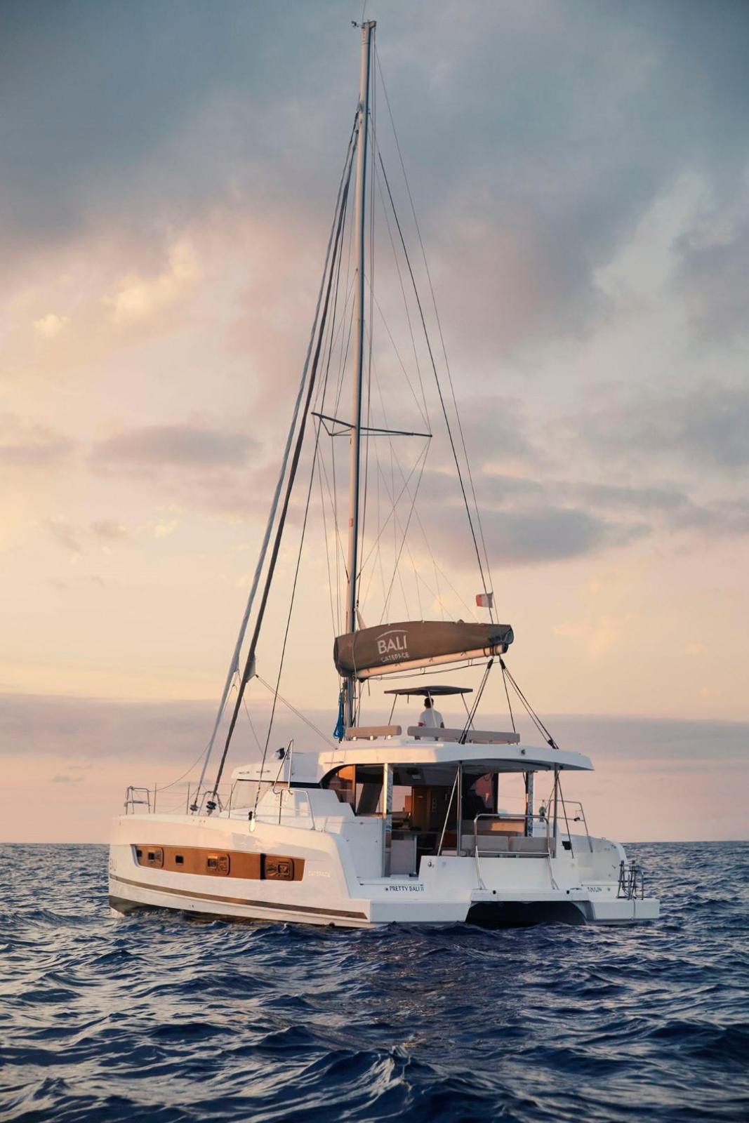 Additional InformationBALI CATSPACE VOILELES GRANDS ESPACES EN 40 PIEDS ! Le CATSPACE est un catamaran de 40 pieds regroupant les innovations de la maison BALI. Ses étraves inversées, éléments de signature des modèles BALI, offrent un design affirmé. Le pontage intégral permet une circulation fluide entre les différents espaces et une aisance de déplacement en navigation. La « porte BALI », amplifie l’espace de vie dans le carré-cockpit. Grâce aux grandes baies vitrées, la lumière s’invite à l’intérieur du bateau.