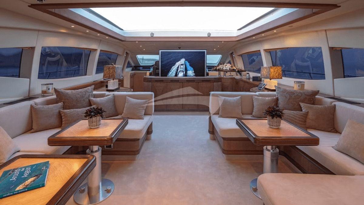 En 2023, l'équipe a effectué des améliorations supplémentaires pour augmenter encore davantage le luxe du yacht. Cela comprenait une remise à neuf complète du salon inférieur, créant une ambiance encore plus raffinée et élégante. Ils ont ajouté de nouveaux canapés de designer, associant confort et élégance, et ont redessiné les lits pour offrir une expérience de sommeil plus luxueuse et reposante.