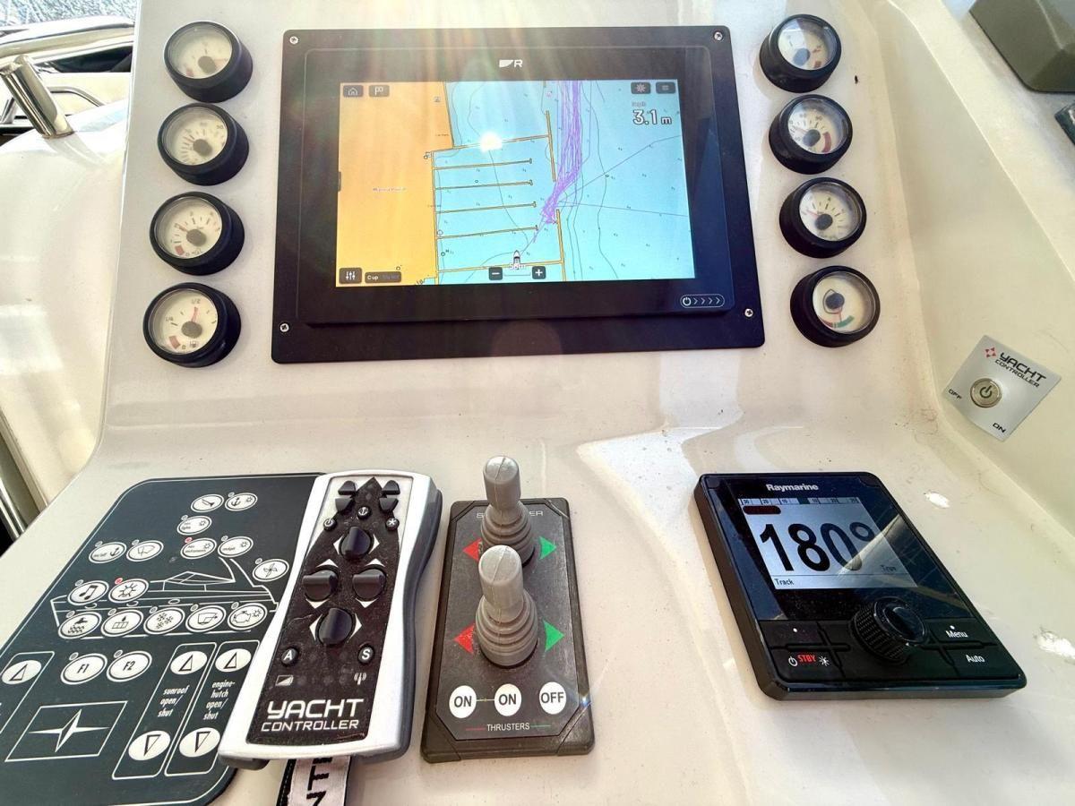 Bavaria Deep Blue 46 yacht à moteur, situé en Croatie, présente une longueur totale de 14,50 mètres et une largeur de 4,30 mètres. Fabriqué en 2009, ce navire est équipé d'outils de navigation complets, y compris une boussole, des instruments de profondeur et de vent, un pilote automatique, VHF, traceur, instrument de vitesse et radar. Il comprend des équipements électroniques modernes tels qu'un chargeur de batterie et un générateur, avec une cuisine bien équipée qui comprend un four à micro-ondes, ce qui le rend idéal pour les croisières de loisir et les voyages prolongés. Une véritable propriété de 3 cabines ! Générateur, climatisation, onduleur, propulseurs d'étrave et de poupe, radar, pilote automatique .. 2009 mais mis à l'eau en 2010 ! TVA payée.