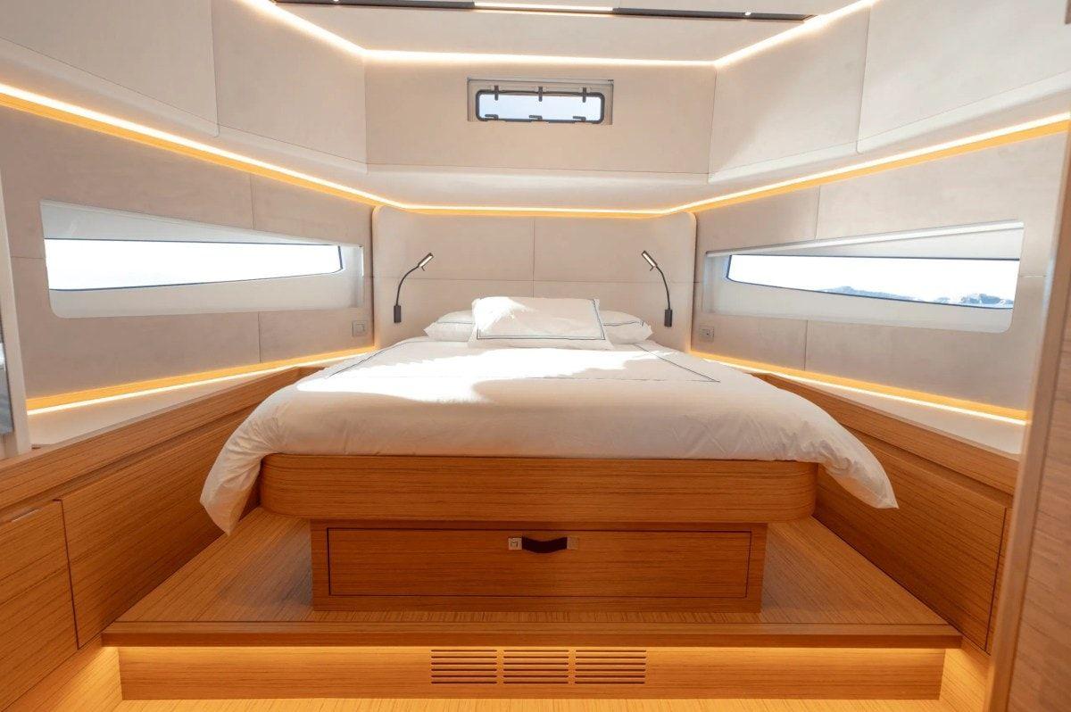 Cette version offre 2 cabines et 2 salles de bains, avec des finitions haut de gamme et une véritable attention aux détails. L'intérieur est baigné de lumière naturelle, avec un mélange réussi de design italien et de confort moderne.