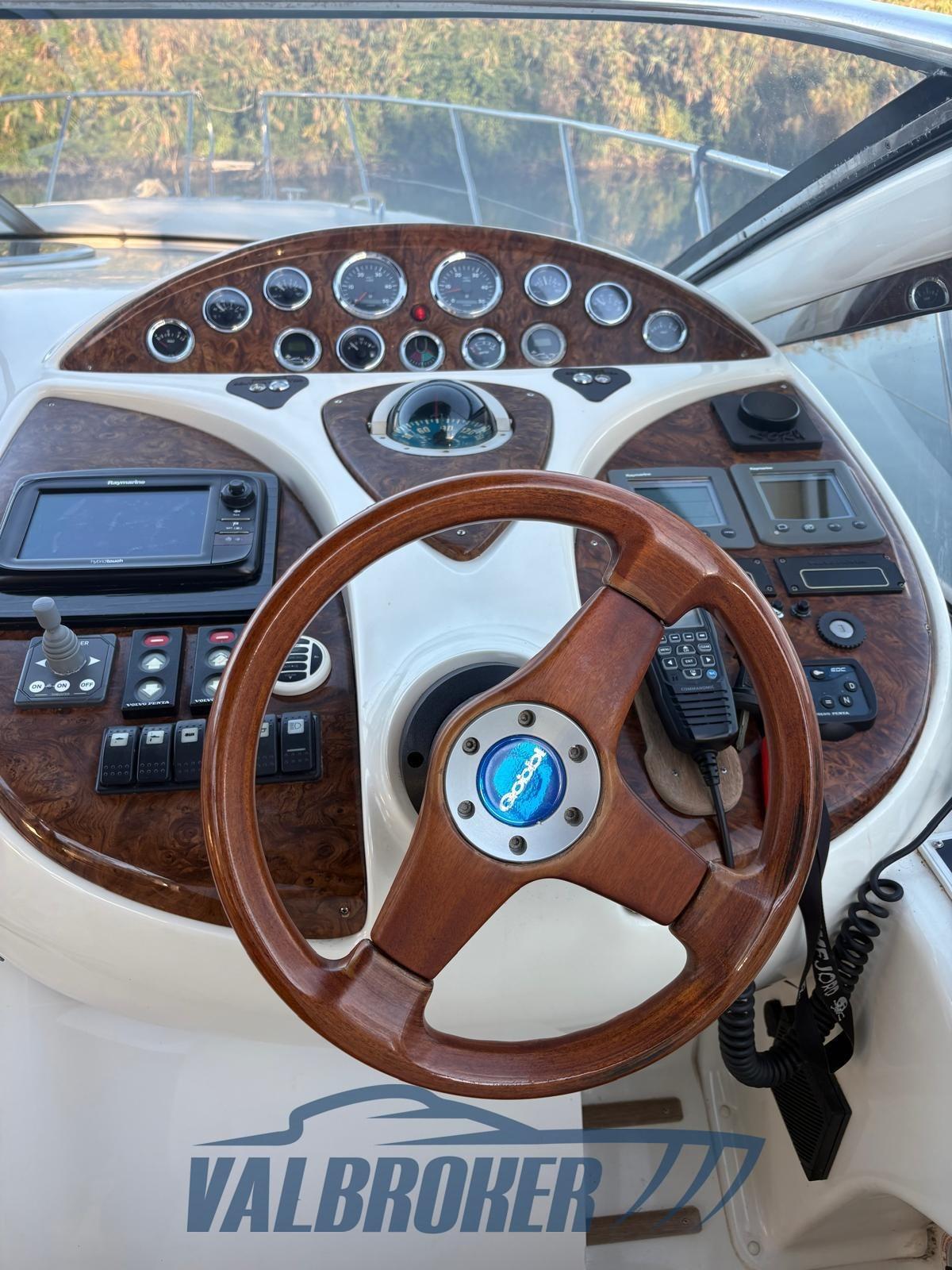 Année modèle 2005. Maintenu en excellent état, toujours au sec en hiver avec une bâche thermorétractable. Entretien régulier, ordinaire et extraordinaire. 2x Volvo Penta KAD 300 turbo diesel 6 cylindres. En option complète : générateur, climatisation chaud/froide, propulseur à proue.