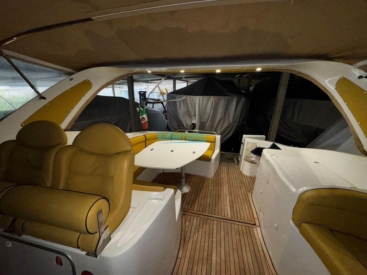 Le Mira 43 d’Innovations et de Projets est un open italien emblématique au profil élégant et à un cockpit extrêmement spacieux, véritable cœur battant du bateau, équipé d’un grand canapé en forme de U, d’une table pouvant être transformée en terrasse de soleil et d’un meuble bar extérieur qui rend la vie extérieure fluide et conviviale.