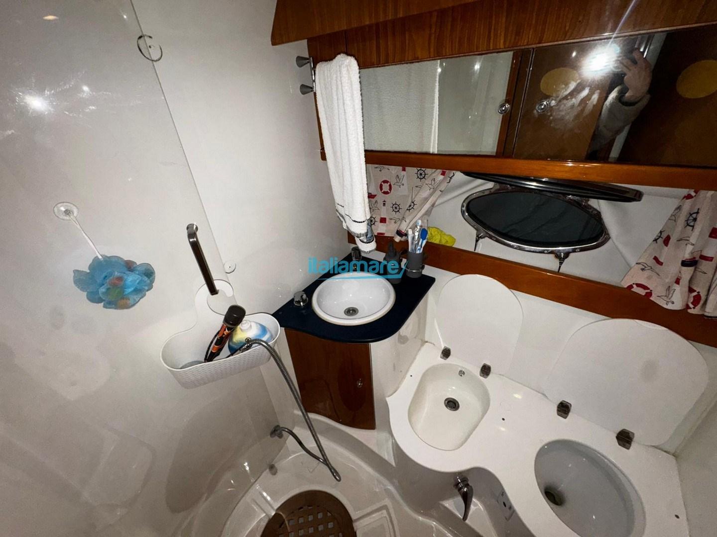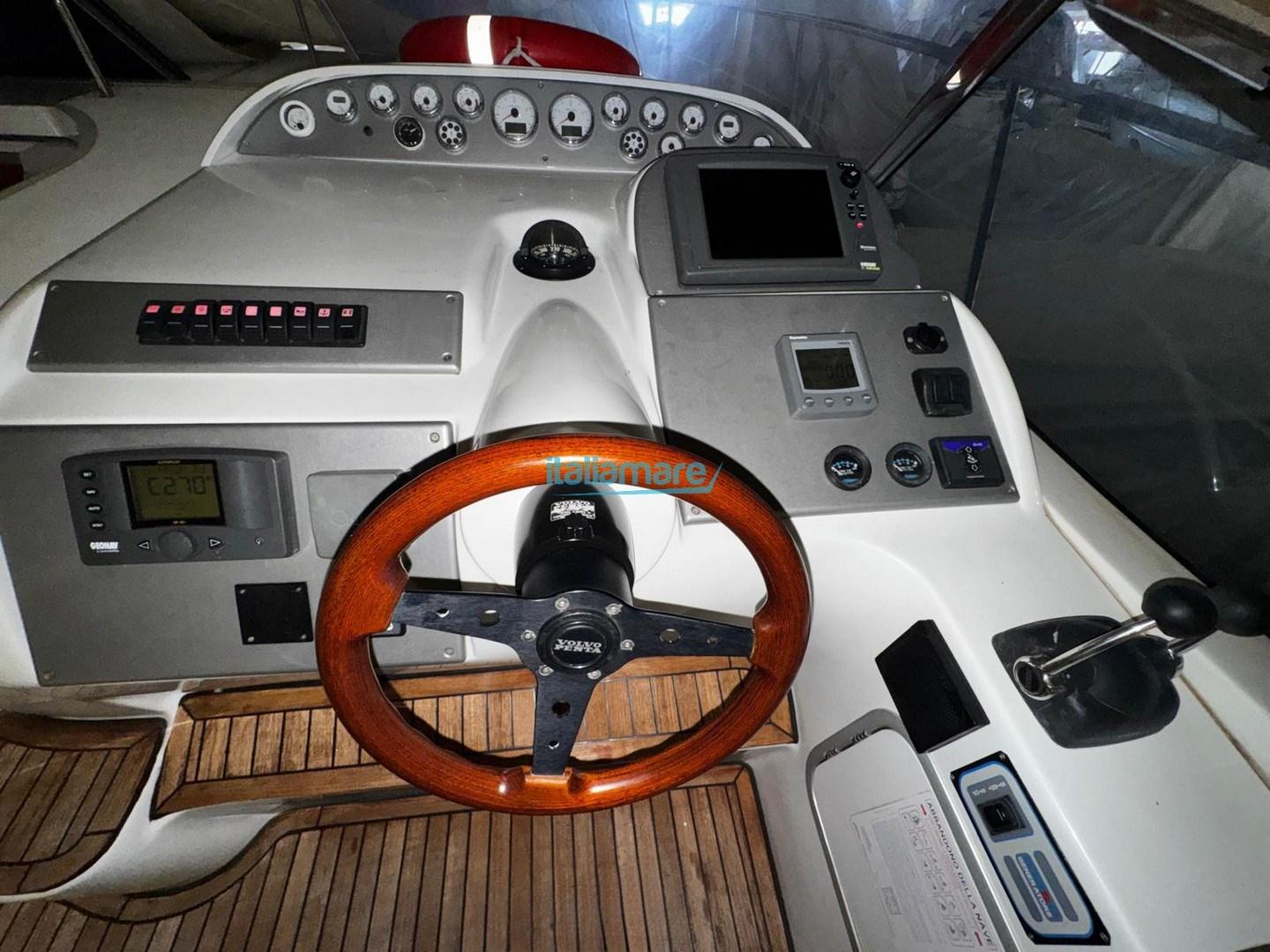 Alarme moteur, Alarme de pompe de cale, Eau sous pression, Douche de cockpit, Flaps électriques, Hard top, Lavabo dans le cockpit, Éclairage de courtoisie, Passerelle, Plateforme arrière (in teak), Pompe de cale automatique, Cockpit en teck, Prise de quai, Connexion eau sous pression à quai, Guindeau électrique, Echelle de bain, table de cockpit.