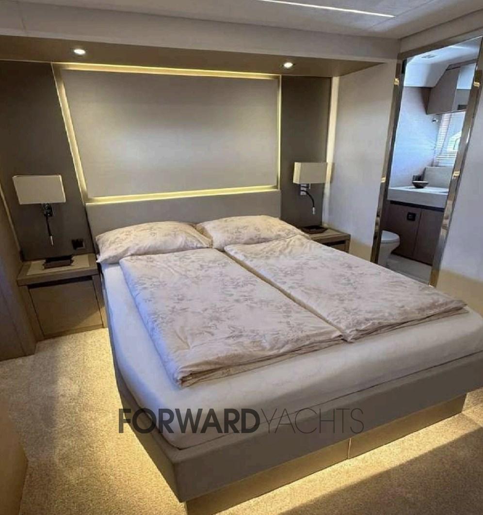 Le yacht dispose de quatre cabines spacieuses avec salle de bains privative et d’une cabine d’équipage indépendante, assurant confort et intimité à tous les invités à bord. Les espaces extérieurs, du flybridge panoramique au cockpit en passant par le bain de soleil à l’avant, vous invitent à découvrir la mer à tout moment de la journée.