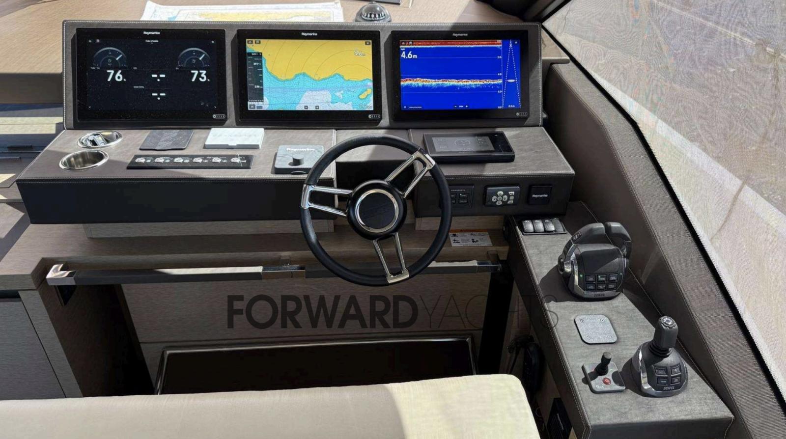 D’une longueur de 21,46 mètres et d’une largeur de 5,33 mètres, il offre de grands espaces bien répartis et finis avec des matériaux de qualité, conçus pour assurer un maximum de confort en mer et au mouillage.
