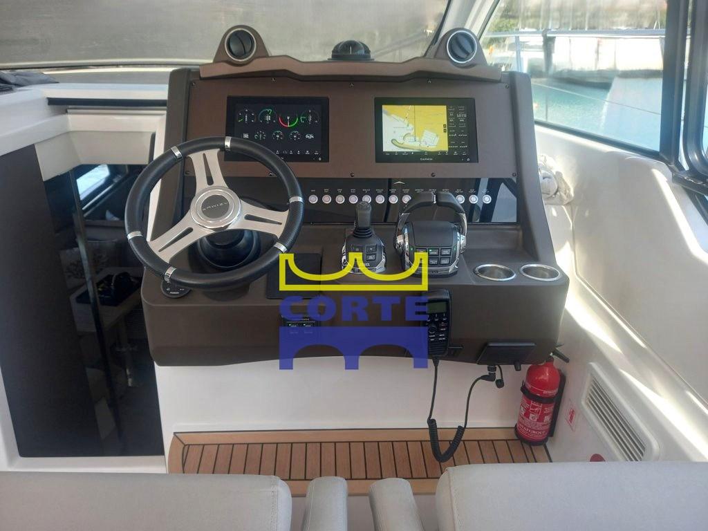 Décoration 5 étoiles, filtres générateurs Racer, pack Garmin Gold, prise étanche 220V pour cockpit, feux supplémentaires 2022, ombrage vertical arrière et latéral 2021, ombrage horizontal de toit souple 2021, feuille de protection contre toit souple imperméable 2021, aile, cordes et housses en néoprène 2024, casier encore divisé pour lignes de stockage 2022, moquette 2024, système wifi avec modem 2021,