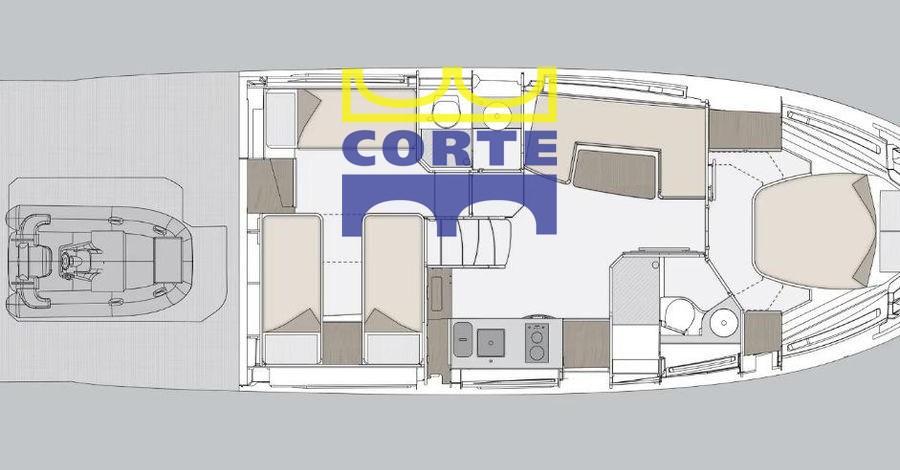 Haut-parleurs, Antenne satellite TV (predisposizione), TNT, TV Ready (dinette e armatoriale), Radio AM/FM (Fusion wireless), 2 TV (dinette e armatoriale).