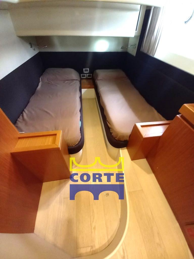 Double cabine principale à l’avant, deux cabines avec lits simples, deux salles de bains. Cabine équipage avec salle de bain, actuellement avec machine à laver et dessalinisateur
