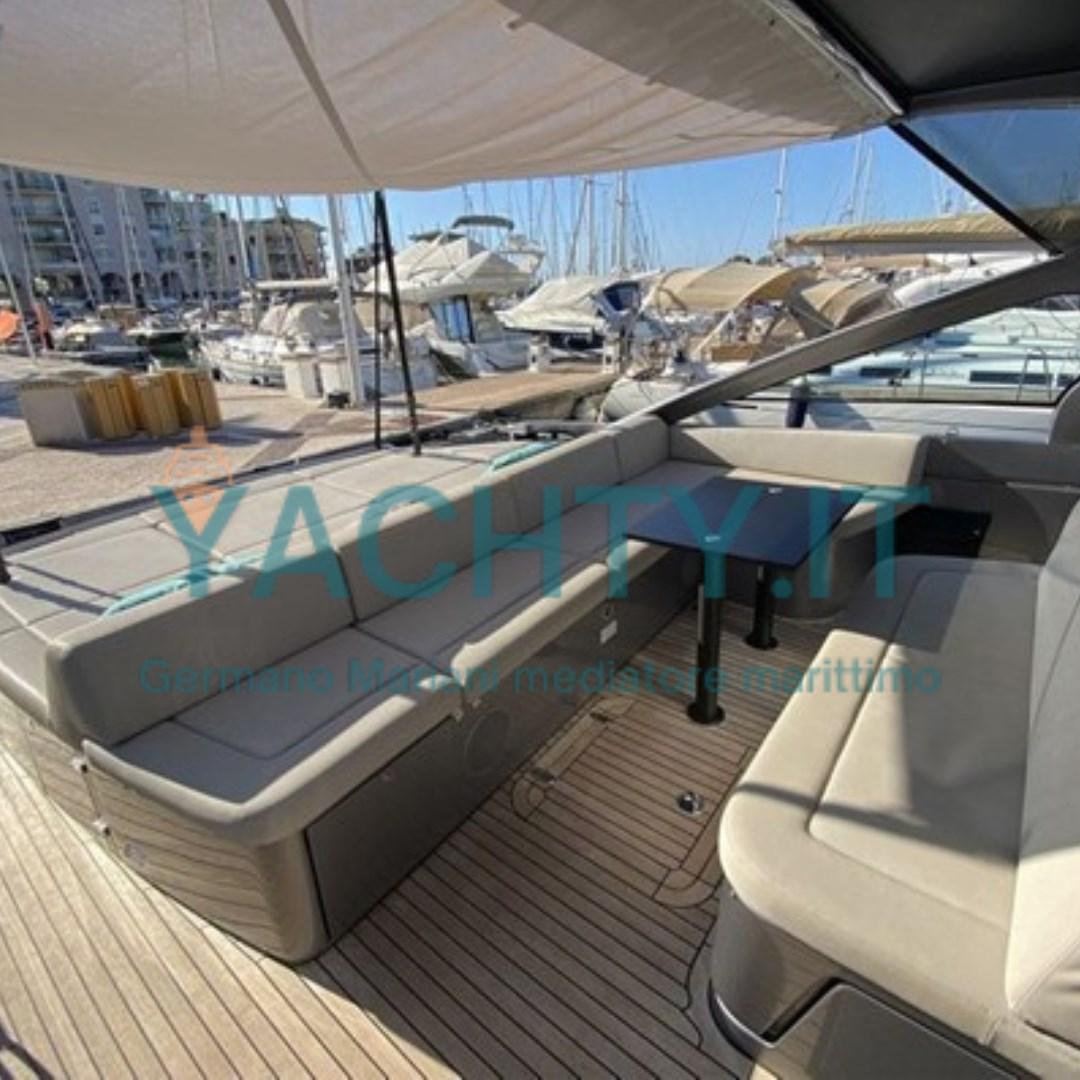 Alarme de pompe de cale, Eau sous pression, Passavant en teck, Couleur spéciale, Douche de cockpit, Garage à annexe, Hard top, Éclairage de courtoisie, Passerelle, Plateforme arrière, Pont en teck, Cockpit en teck, Prise de quai, Guindeau électrique, Echelle de bain, Stabilisateurs (giroscopio Seakeeper).