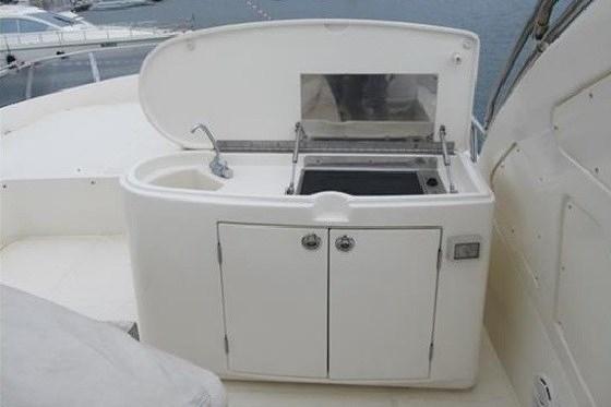 Alarme moteur, Alarme de pompe de cale, Eau sous pression, Passavant en teck, Douche de cockpit, Double barre à roue, Flaps électriques, Grue de flybridge, Extincteur(s) fixe(s), Éclairage de courtoisie, Passerelle, Plateforme arrière, Pompe de cale automatique, Pompe de cale manuelle, Porte latérale, Porte latérale, Cockpit en teck, Prise de quai, Onduleur, Rollbar, Guindeau électrique, Echelle de bain, table de cockpit, Filières avec sortie latèrale, Corne, Winch électrique arrière.