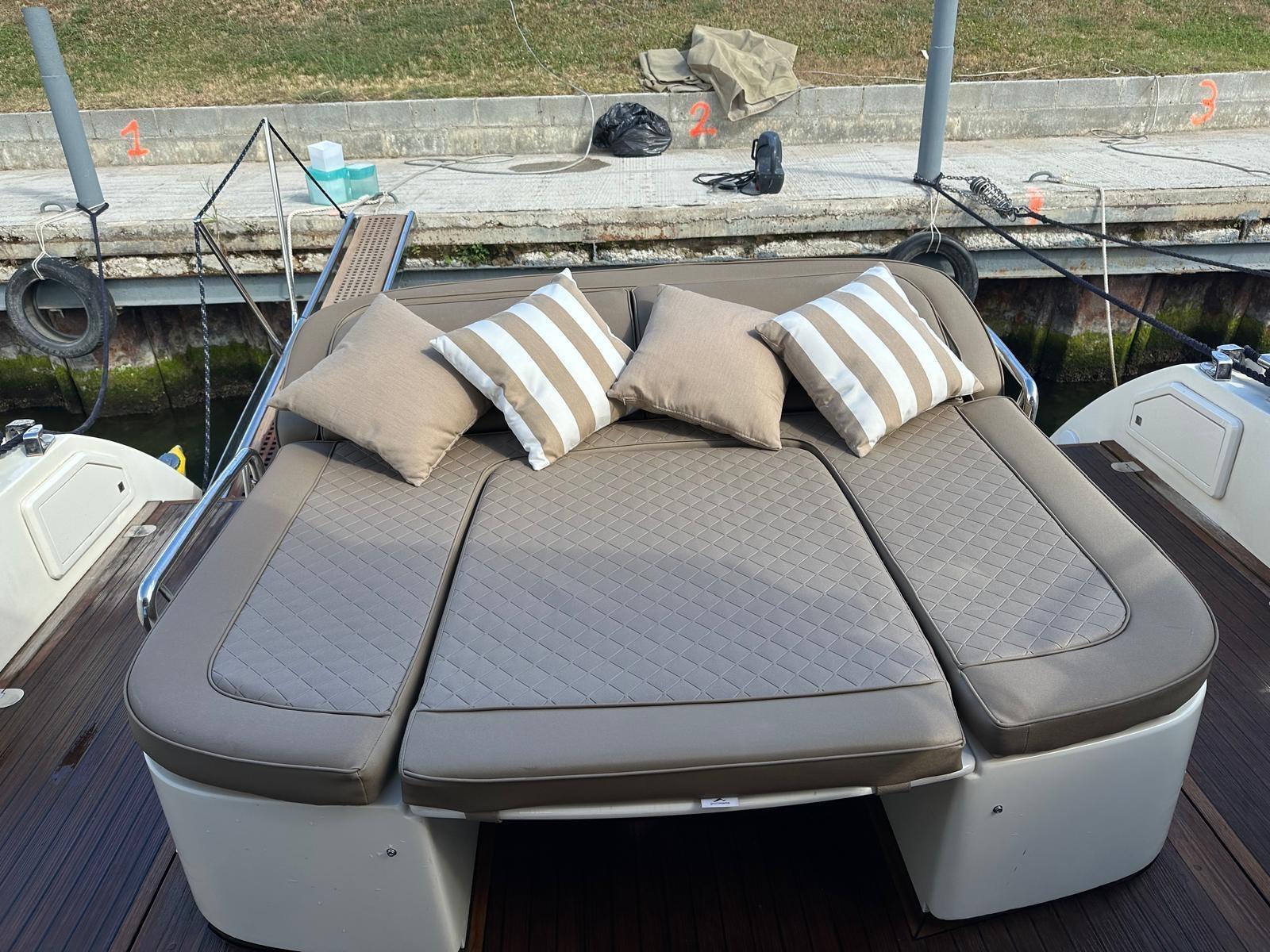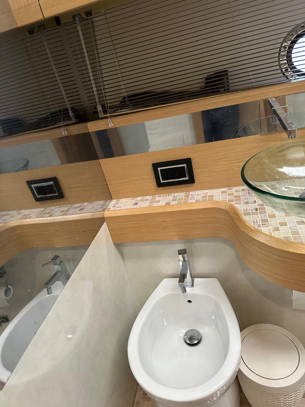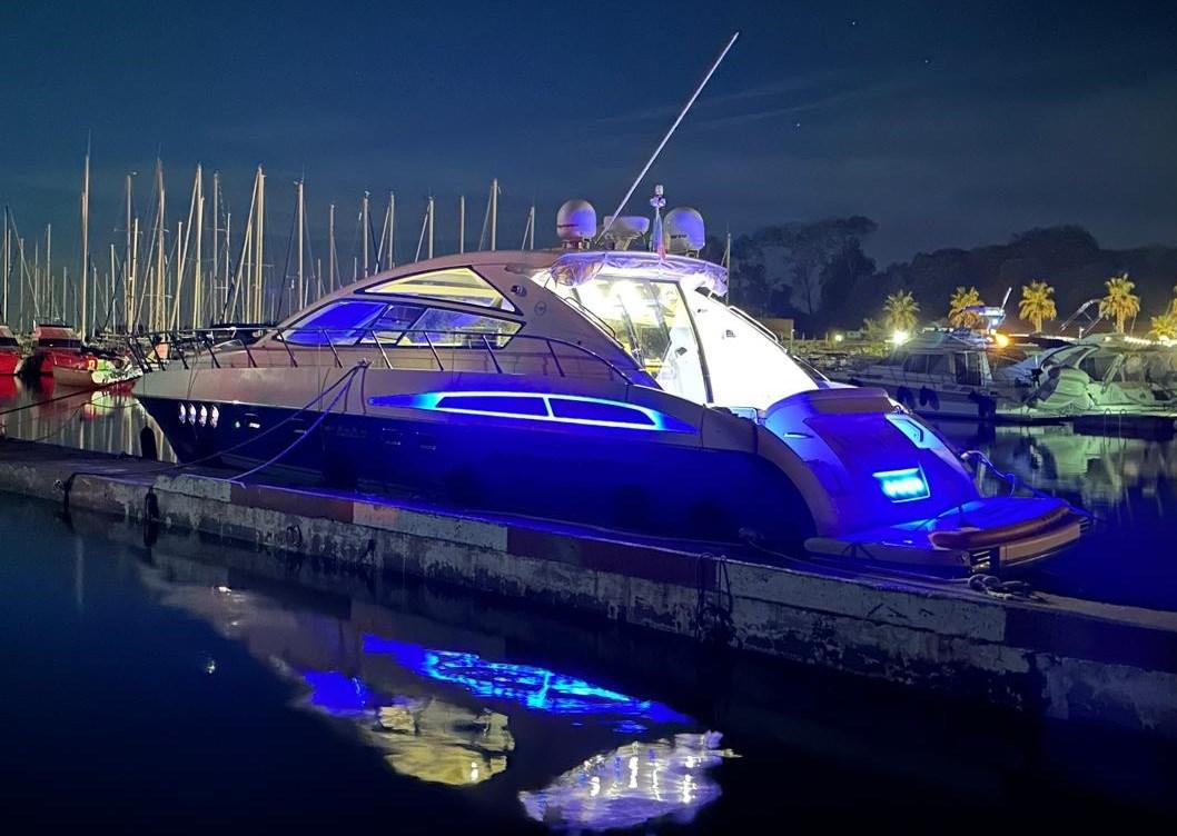 Alarme moteur, Alarme de pompe de cale, Alternateur, Ouverture du compartiment moteur électrique, Eau sous pression, Couleur spéciale (CARTA ZUCCHERO CANGIANTE), Douche de cockpit, Phare de poursuite, Flaps électriques, Hard top, Extincteur(s) fixe(s), Éclairage de courtoisie, Passerelle, Plateforme arrière, Pompe de cale automatique, Pompe de cale manuelle, Porte latérale, Cockpit en teck, Prise de quai, Guindeau électrique, Echelle de bain, table de cockpit (ELETTRICO A SCOMPARSA), Filières avec sortie latèrale, Corne, Winch électrique arrière.