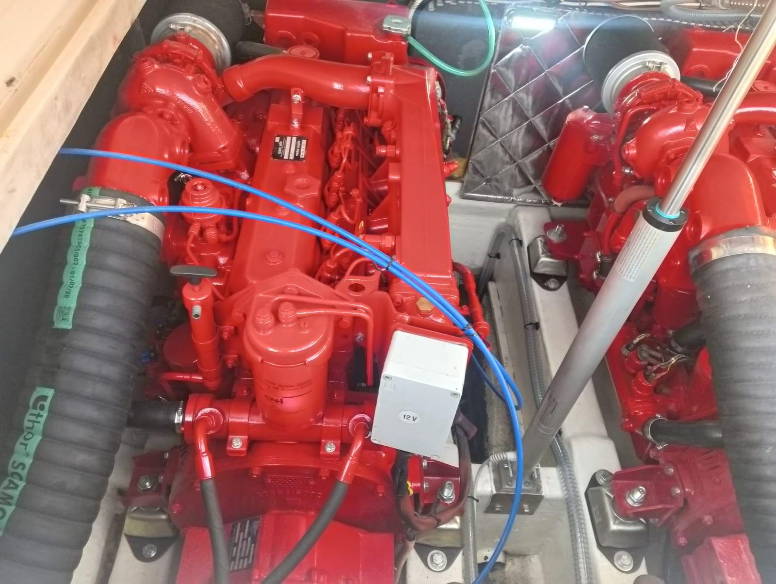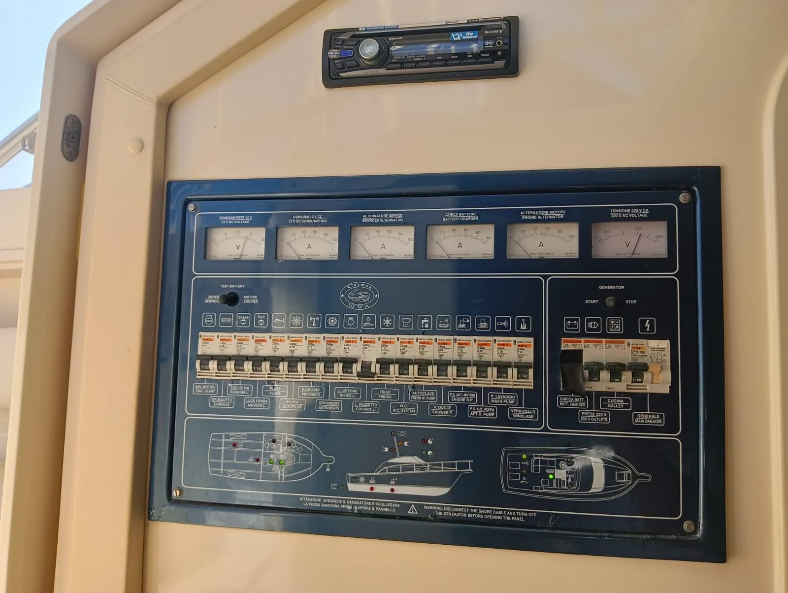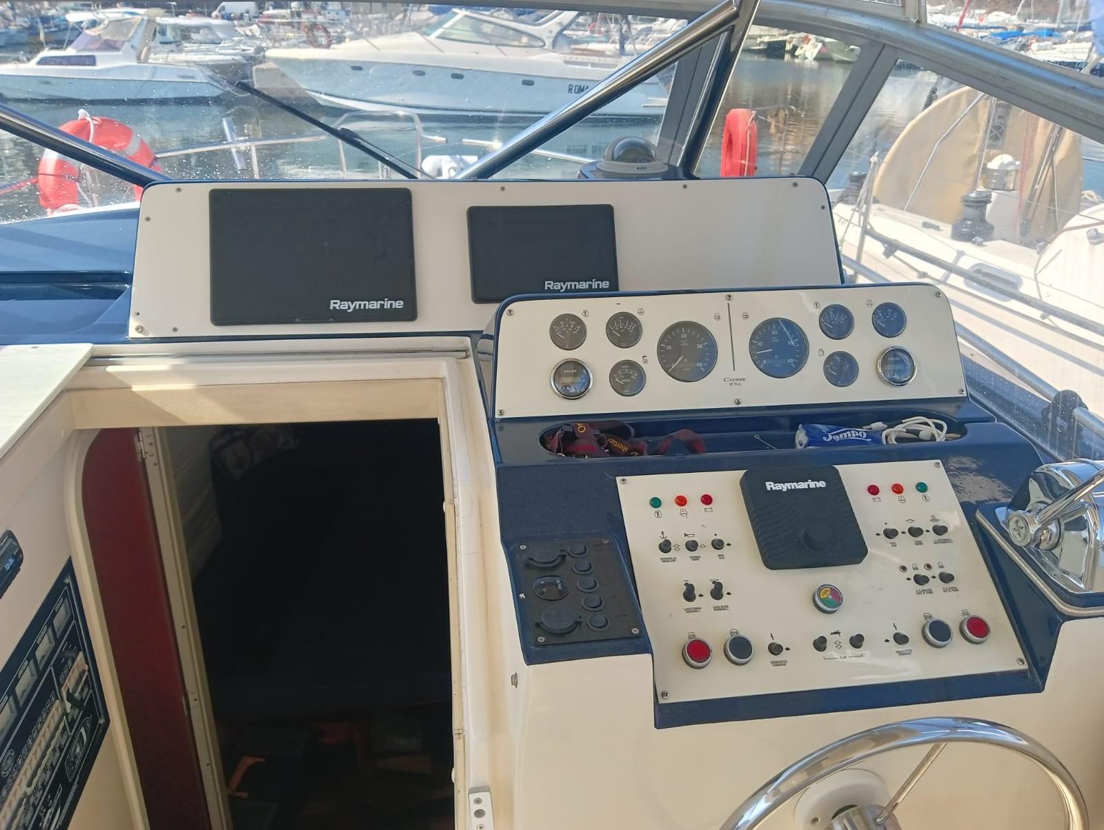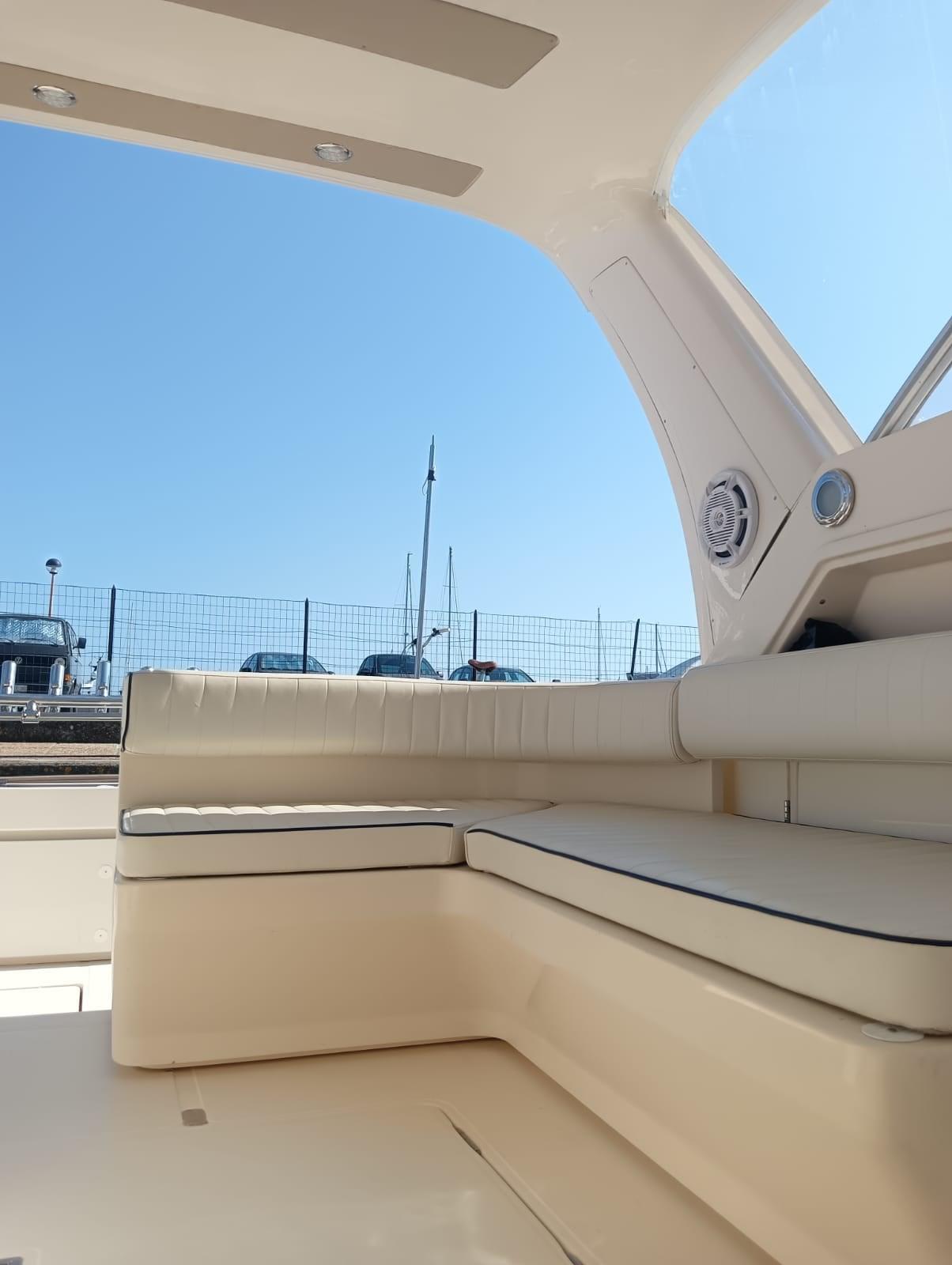 Alarme moteur, Alarme de pompe de cale, Ouverture du compartiment moteur électrique, Eau sous pression, Couleur spéciale (SCAFO BLU), Douche de cockpit, Flaps électriques, Éclairage de courtoisie, Plateforme arrière, Pompe de cale automatique, Pompe de cale manuelle, Prise de quai, Guindeau électrique, Echelle de bain, Corne, T-Top.