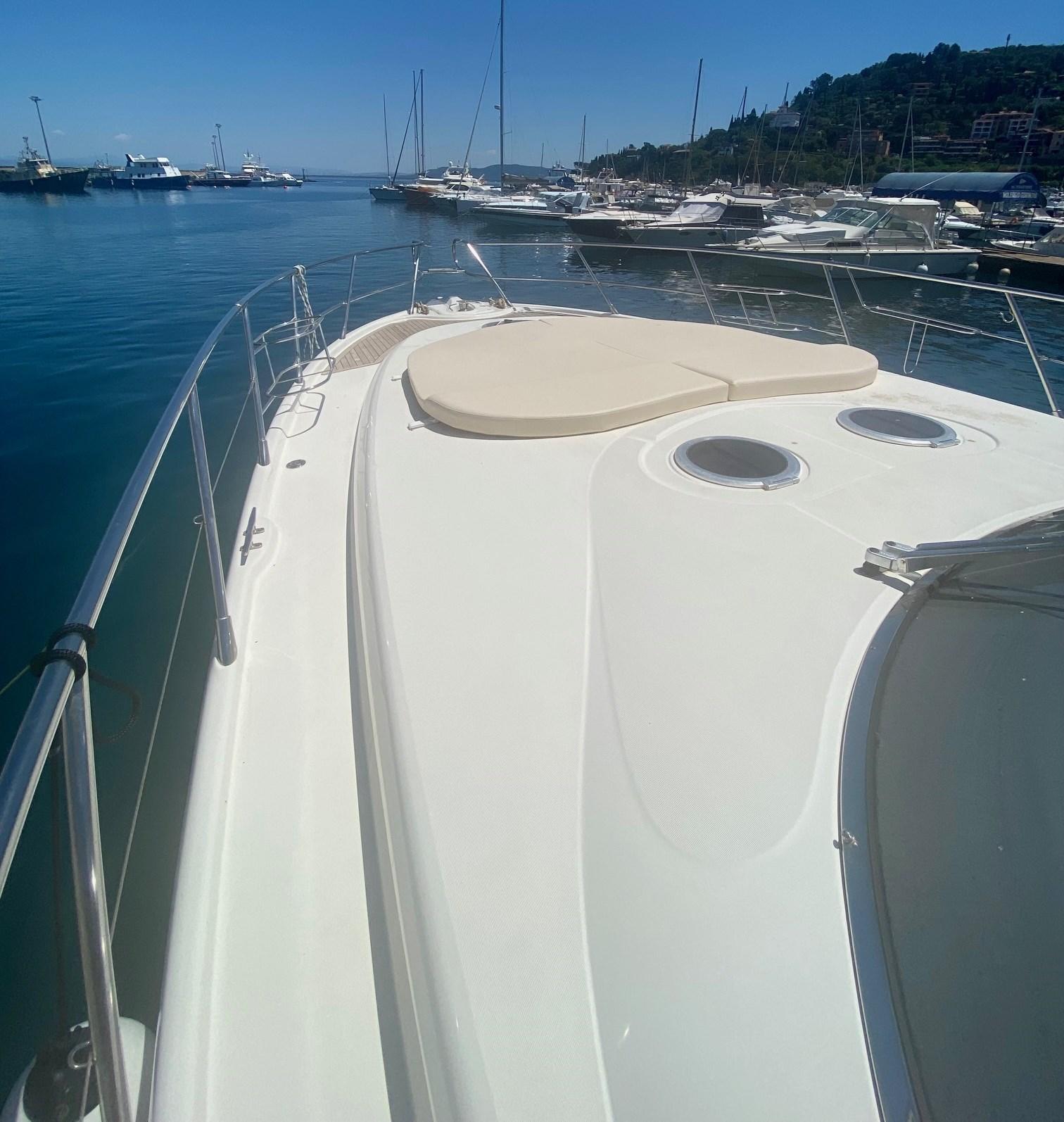 Alarme moteur, Alarme de pompe de cale, Alternateur, Eau sous pression, Câble d’alimentation à quai, Couleur spéciale (SCAFO BLU), Douche de cockpit, Phare de poursuite, Flaps hydrauliques, Garage à annexe, Extincteur(s) fixe(s), Lavabo dans le cockpit, Éclairage de courtoisie, Passerelle, Plateforme arrière, Pompe de cale automatique, Pompe de cale manuelle, Cockpit en teck, Prise de quai, Rollbar, Guindeau électrique, Echelle de bain, table de cockpit, Filières avec sortie latèrale, Corne, Winch électrique arrière.