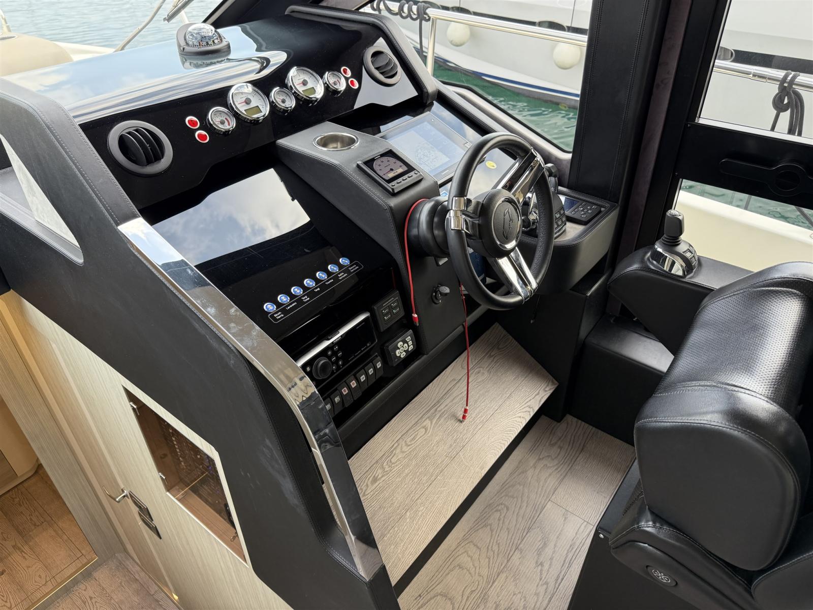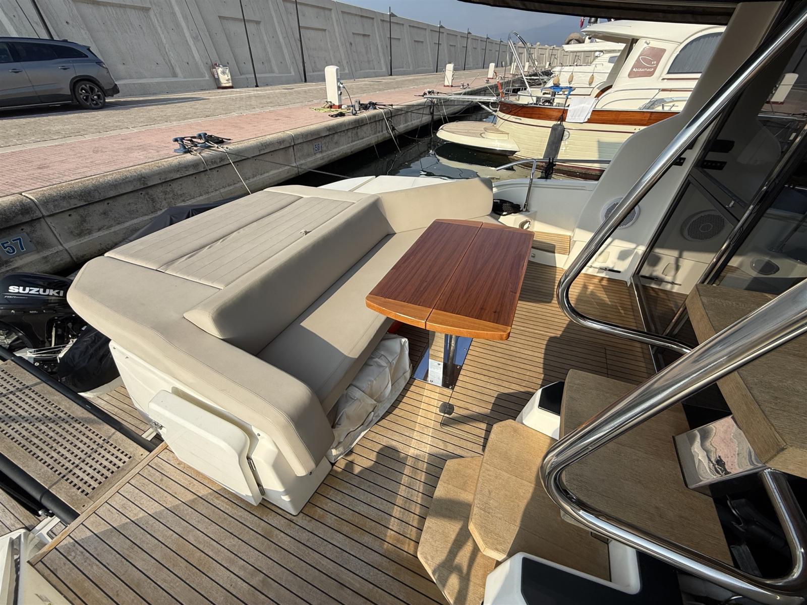 Alarme moteur, Alarme de pompe de cale, Alternateur, Eau sous pression, Passavant en teck, Câble d’alimentation à quai, Douche de cockpit, Double barre à roue, Phare de poursuite, Flaps électriques (HUMPHREE), Extincteur(s) fixe(s), Indicateurs de flaps, Lavabo dans le cockpit, Éclairage de courtoisie, Spots sous-marins, Passerelle, Plateforme arrière (AFFONDABILE IDRAULICAMENTE), Pompe de cale automatique, Pompe de cale manuelle, Pont en teck, Porte latérale (CON APERTURA FINESTRATURA A COMPASSO), Porte latérale, Cockpit en teck, Prise de quai, Répétiteur électronique, Rollbar, Guindeau électrique, Echelle de bain, Selles pour Annexe, table de cockpit, Filières avec sortie latèrale, Corne, Winch électrique arrière.
