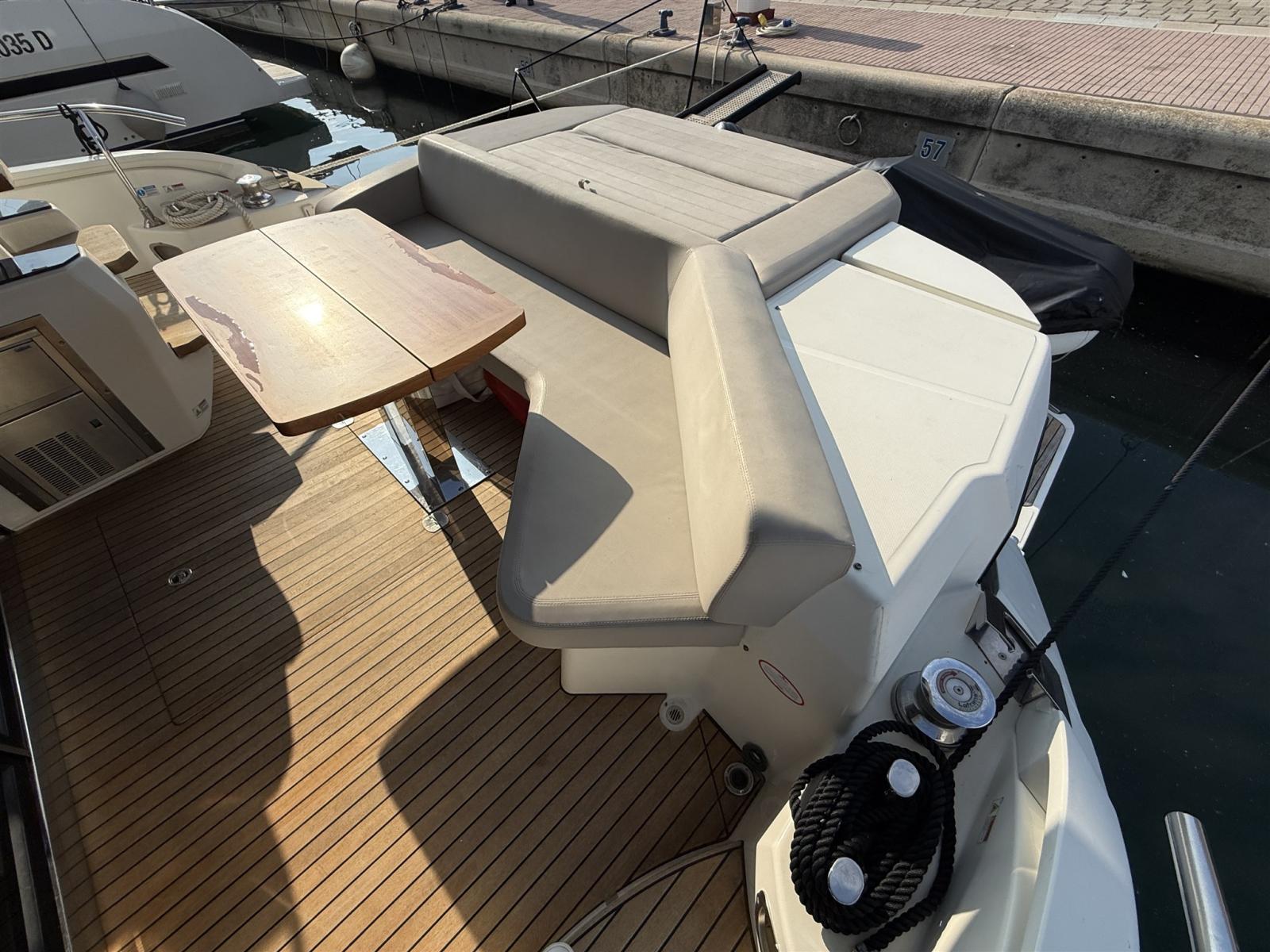 Sellerie complète, Coussins arrieres, Coussin avant, Sellerie de fly, sellerie de cockpit, Matelas, Supplément bain de soleil (A POPPA), Taud de console, Taud électrique, Taud de soleil.