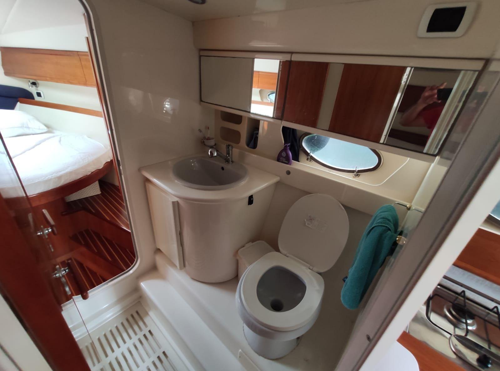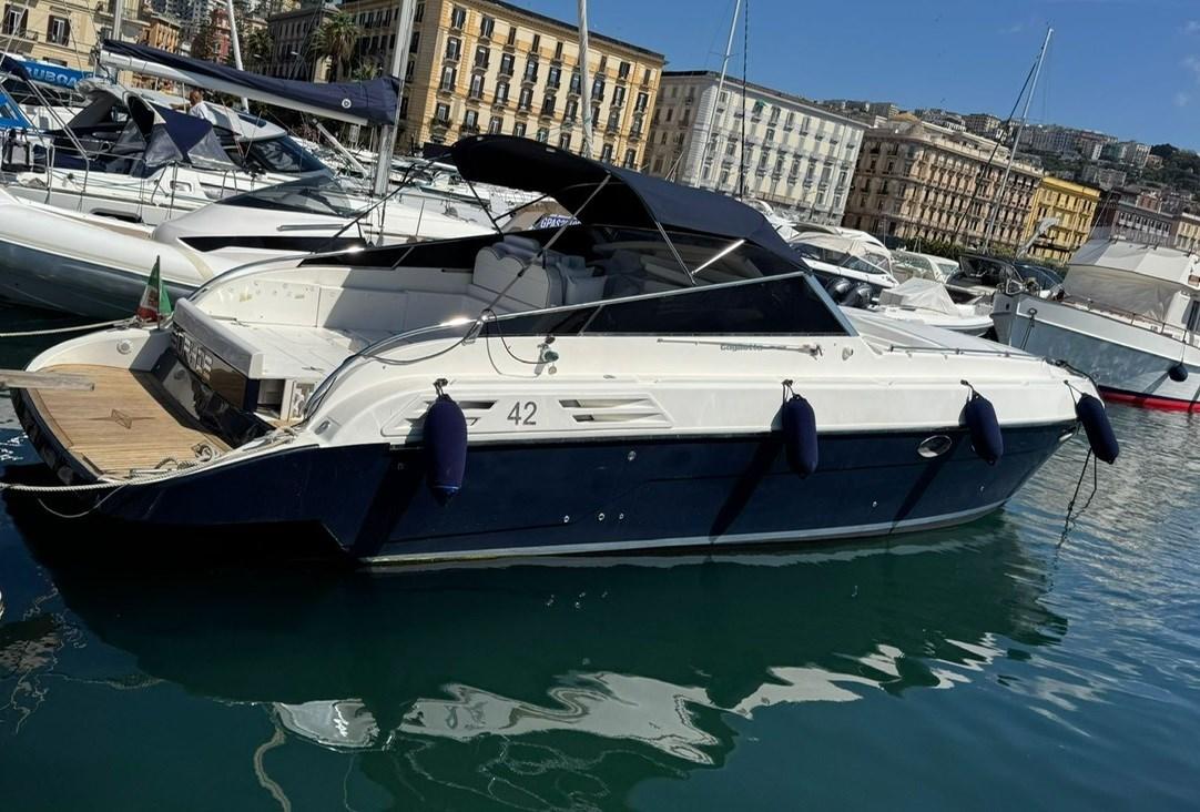 Alarme moteur, Alarme de pompe de cale, Alternateur, Eau sous pression, Douche de cockpit, Flaps hydrauliques, Extincteur(s) fixe(s), Éclairage de courtoisie, Passerelle (IDRAULICA), Plateforme arrière, Pompe de cale automatique, Pompe de cale manuelle, Cockpit en teck, Prise de quai, Guindeau électrique, table de cockpit, Table pliante de salon, Corne.