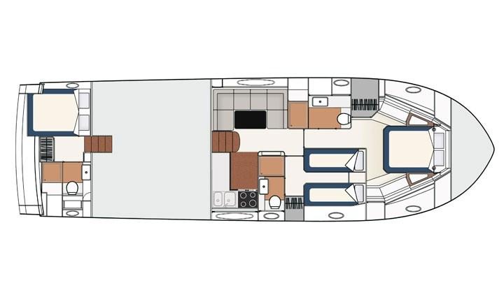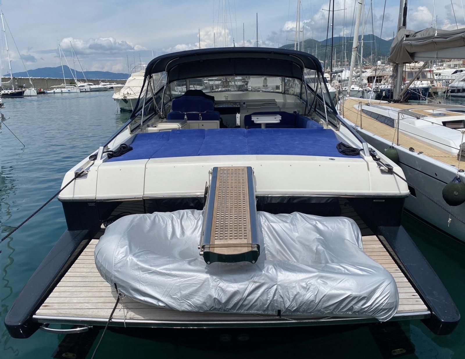 Alarme moteur, Alarme de pompe de cale, Eau sous pression, Couleur spéciale (SCAFO BLU), Douche de cockpit, Flaps hydrauliques, Extincteur(s) fixe(s), Indicateurs de flaps, Éclairage de courtoisie (A LED), Spots sous-marins, Passerelle (IDRAULICA), Plateforme arrière, Pompe de cale automatique, Pompe de cale manuelle, Cockpit en teck, Prise de quai, Guindeau électrique, Echelle de bain, table de cockpit, Corne, Winch électrique arrière.