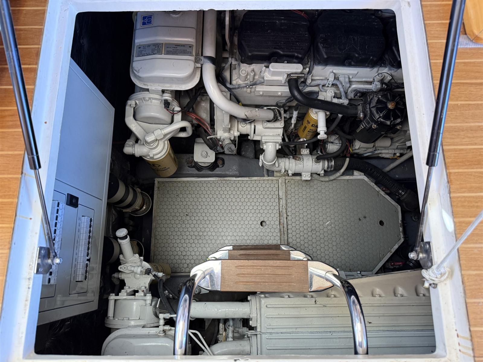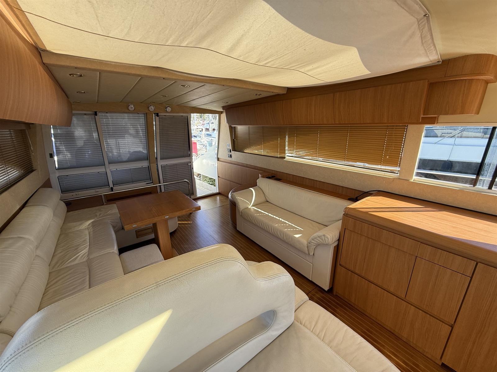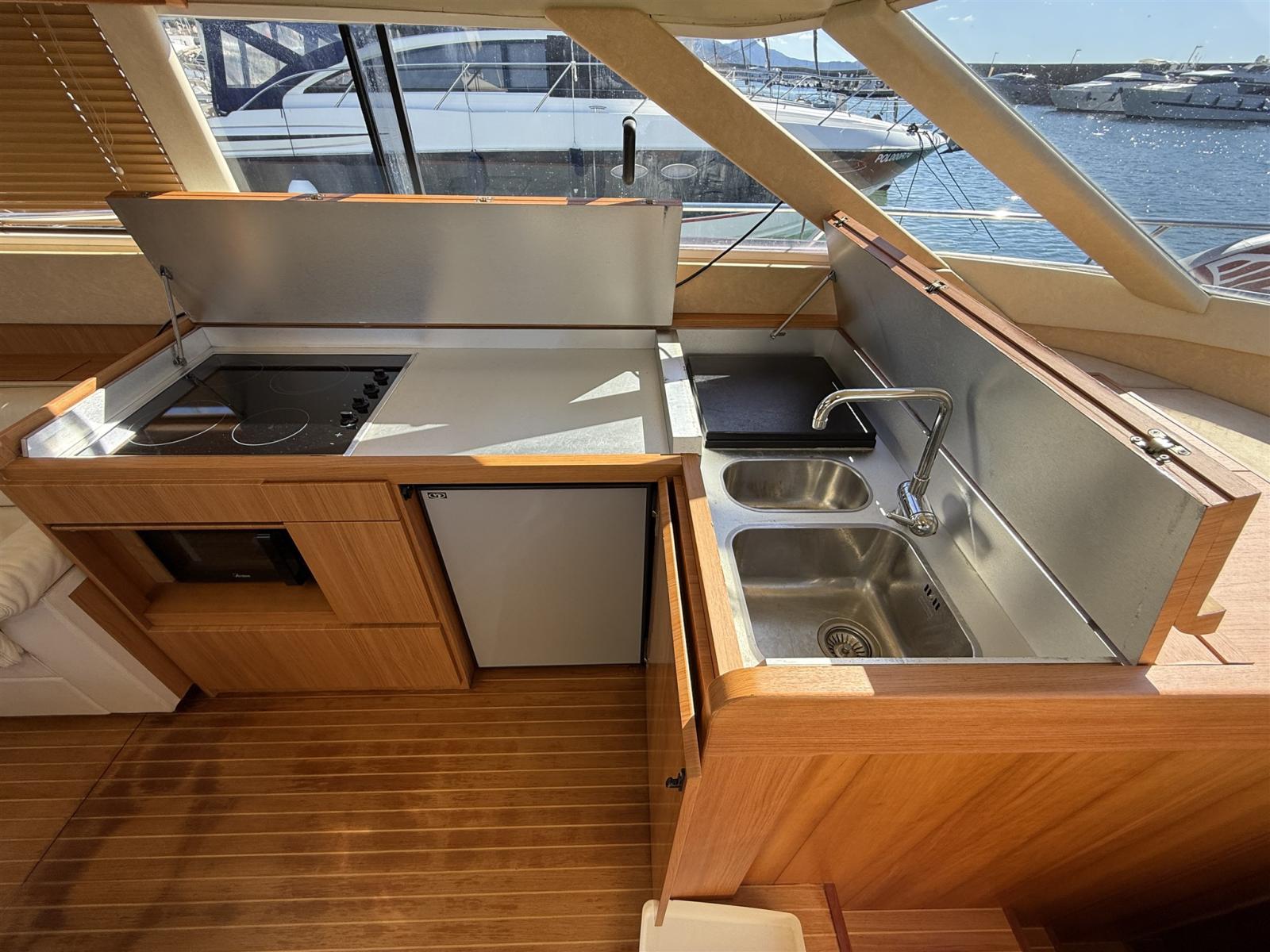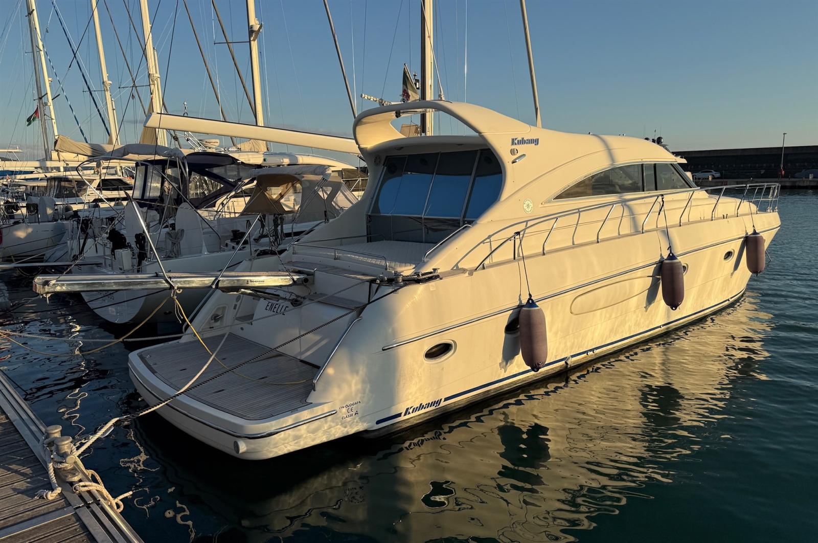 Alarme moteur, Alarme de pompe de cale, Alternateur, Eau sous pression, Câble d’alimentation à quai, Filères, Douche de cockpit, Flaps hydrauliques, Hard top, Extincteur(s) fixe(s), Éclairage de courtoisie, Panneau solaire, Passerelle, Plateforme arrière, Pompe de cale automatique, Pompe de cale manuelle, Pont en teck, Porte latérale, Cockpit en teck, Prise de quai, Rollbar, Guindeau électrique, Echelle de bain, Filières avec sortie latèrale, Corne, Winch électrique arrière.