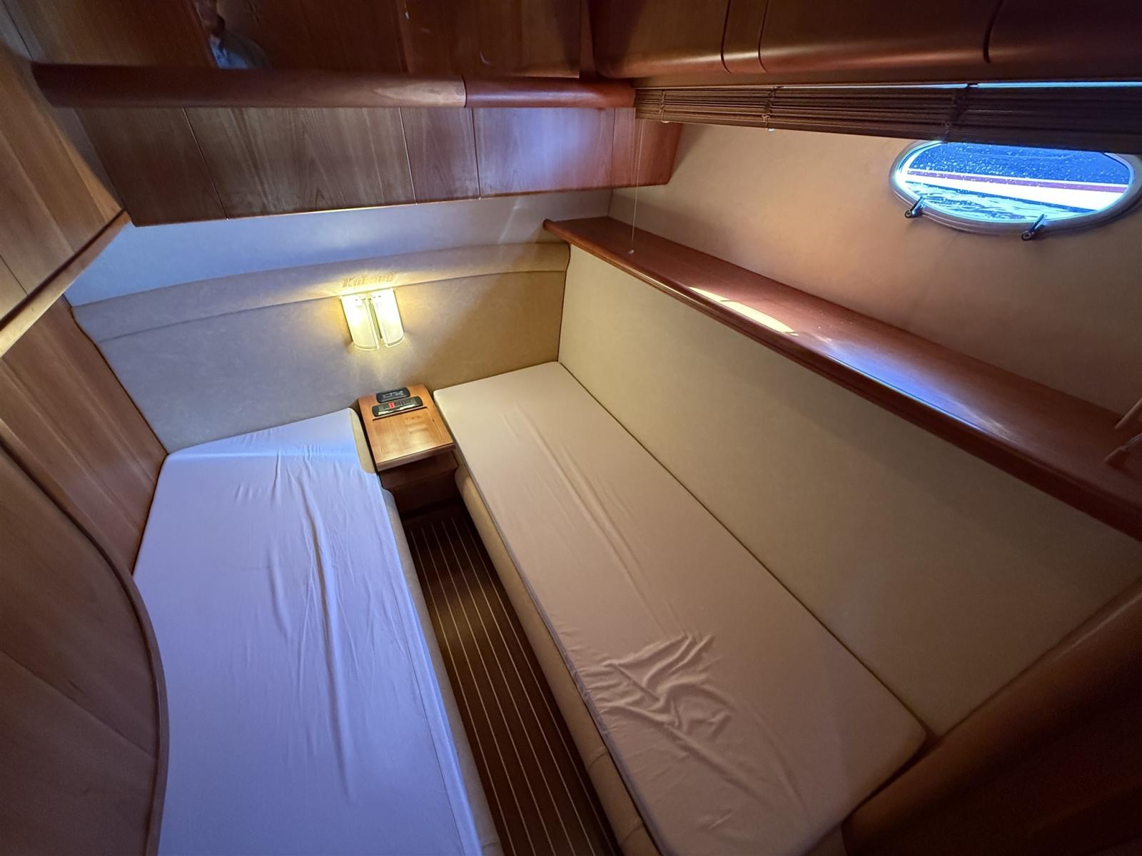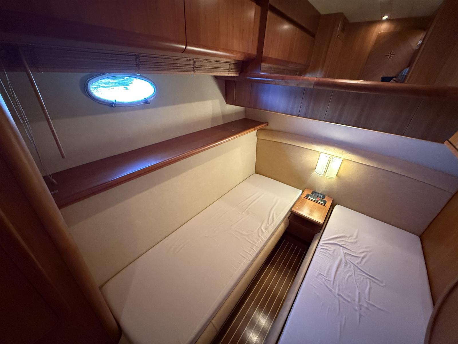 N. 4 CABINES (N. 2 CABINES DOUBLES + N. 2 CABINES D’INVITÉS CHACUNE AVEC 2 LITS PLATS) + 3 SALLES DE BAIN + CABINE D’ÉQUIPAGE