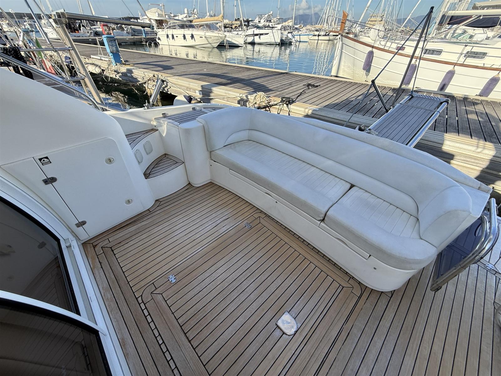 Alarme moteur, Alarme de pompe de cale, Alternateur, Eau sous pression, Câble d’alimentation à quai, Filères, Douche de cockpit, Double barre à roue, Phare de poursuite, Flaps électriques, Extincteur(s) fixe(s), Indicateurs de flaps, Lavabo dans le cockpit, Éclairage de courtoisie, Spots sous-marins, Défenses, Passerelle, Plateforme arrière, Pompe de cale automatique, Pompe de cale manuelle, Porte latérale, Cockpit en teck, Prise de quai, Répétiteur électronique, Rollbar, Guindeau électrique, Echelle de bain, table de cockpit, Filières avec sortie latèrale, Corne.