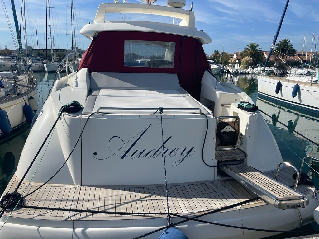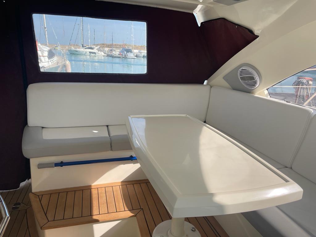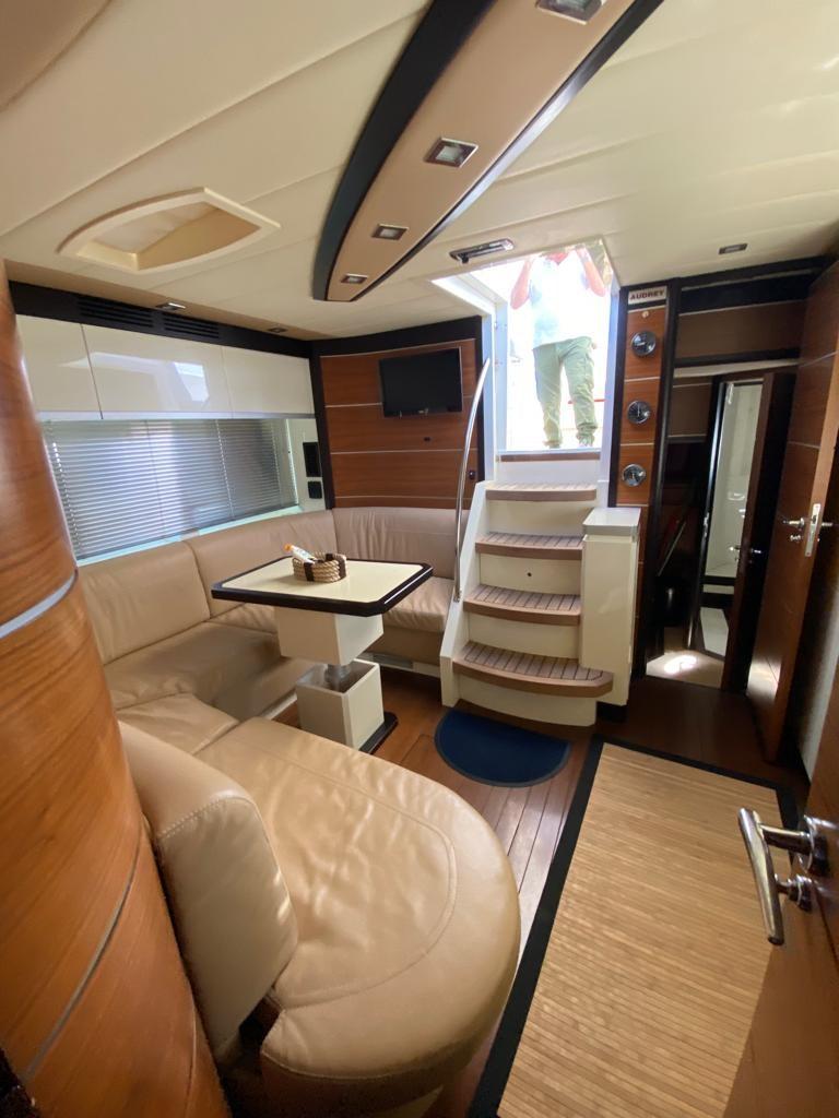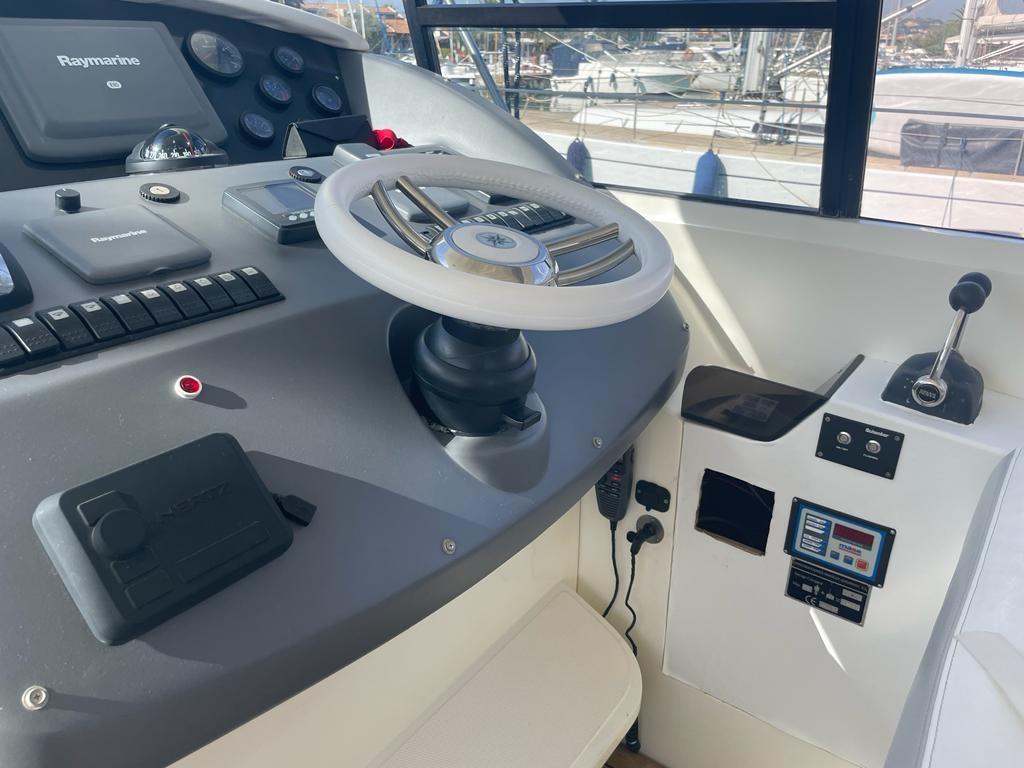 Alarme gaz, Alarme moteur, Alarme de pompe de cale, Eau sous pression, Douche de cockpit, Phare de poursuite, Flaps hydrauliques, Garage à annexe, Hard top, Extincteur(s) fixe(s), Lavage de chaine, Éclairage de courtoisie, Passerelle, Pompe de cale automatique, Pompe de cale manuelle, Cockpit en teck, Prise de quai, Connexion eau sous pression à quai, Guindeau électrique, Echelle de bain, table de cockpit, Corne.