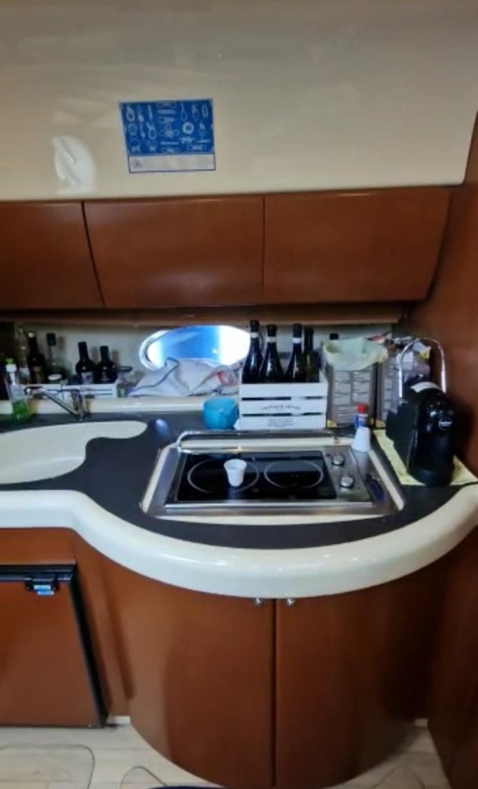 Alarme moteur, Ouverture du compartiment moteur électrique, Eau sous pression, Douche de cockpit (calda e fredda), Phare de poursuite, Flaps hydrauliques, Lavabo dans le cockpit, Éclairage de courtoisie, Plateforme arrière, Pompe de cale automatique, Cockpit en teck, Prise de quai, Connexion eau sous pression à quai, Onduleur, Guindeau électrique, Echelle de bain, table de cockpit.