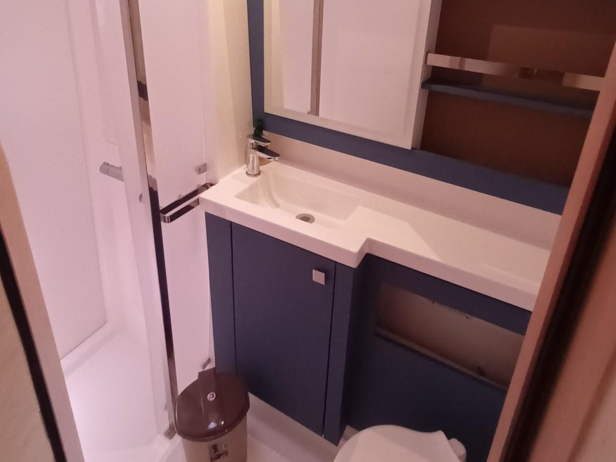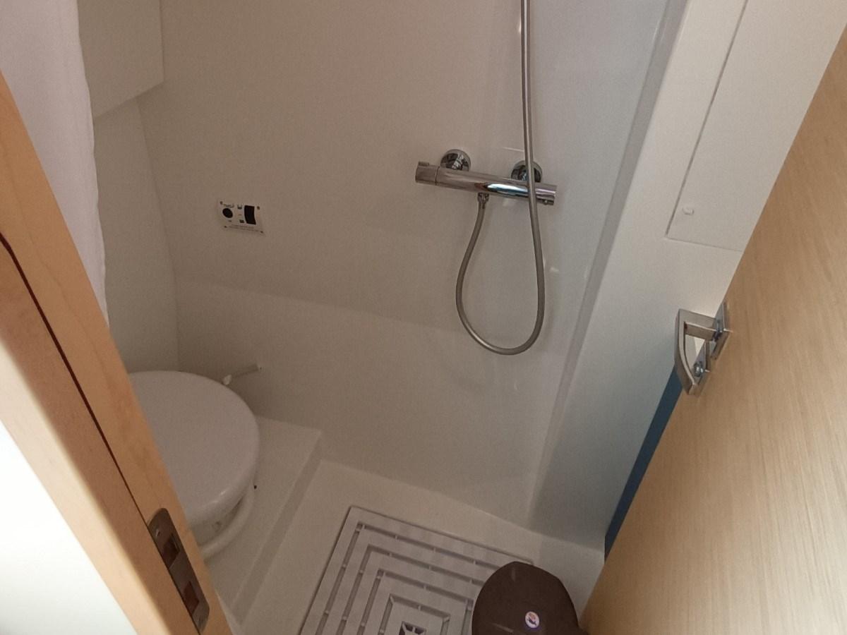 1 CABINE D’ÉQUIPAGE À LA PROUE DROITE AVEC SALLE DE BAIN À LA PROUE GAUCHE