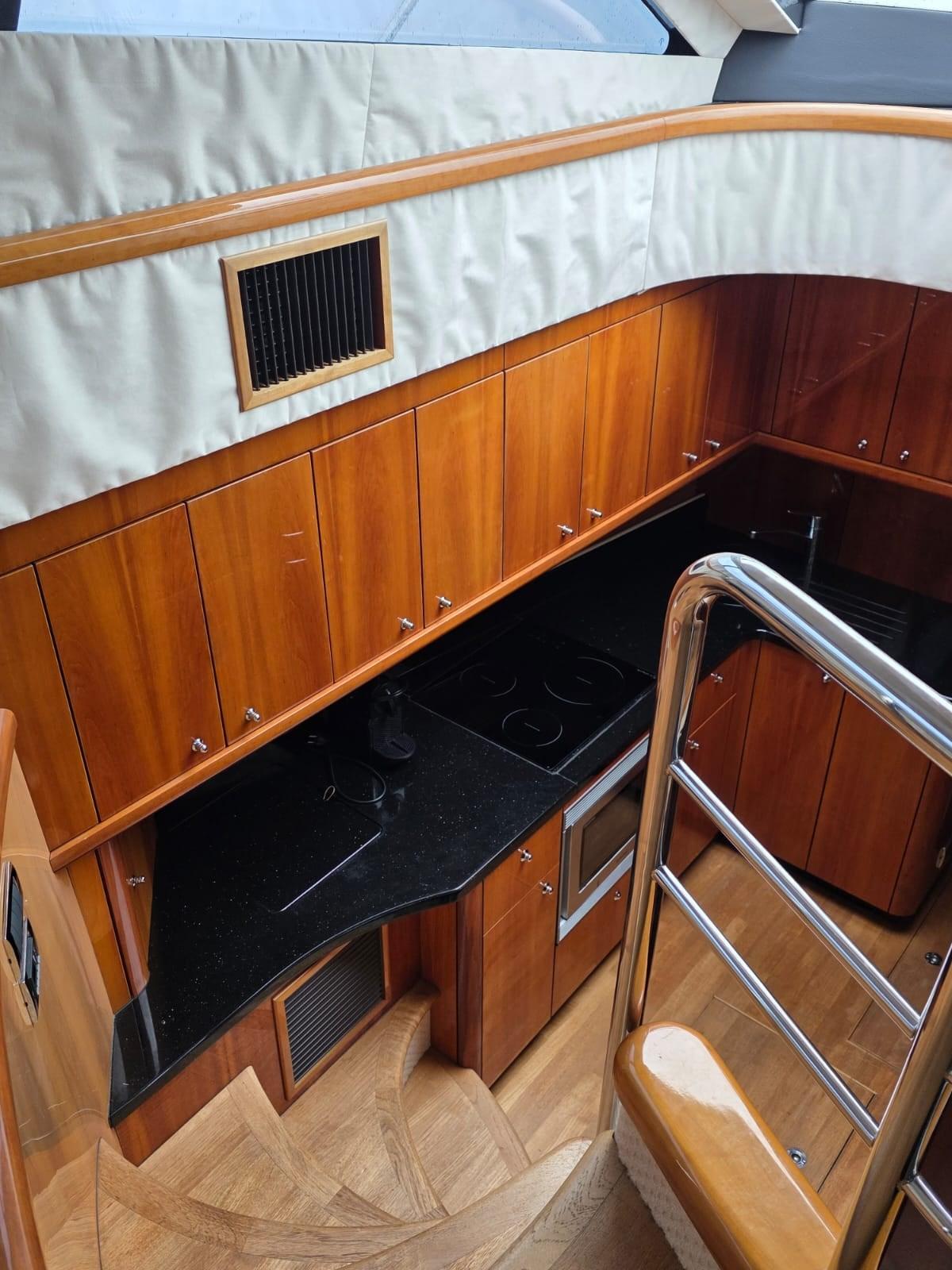 Alarme moteur, Alarme de pompe de cale, Alternateur, Eau sous pression, Câble d’alimentation à quai, Couleur spéciale (SCAFO BANDA BLU), Filères, Douche de cockpit, Double barre à roue, Phare de poursuite, Flaps électriques, Extincteur(s) fixe(s), Lavage de chaine, Éclairage de courtoisie, Spots sous-marins, Moniteur de batterie, Passerelle, Plateforme arrière (ELETTROIDRAULICA AFFONDABILE), Pompe de cale automatique, Porte latérale, Cockpit arrière, Cockpit en teck, Prise de quai, Répétiteur électronique, Rollbar, Guindeau électrique, Echelle de bain, table de cockpit, Corne, Winch électrique arrière.