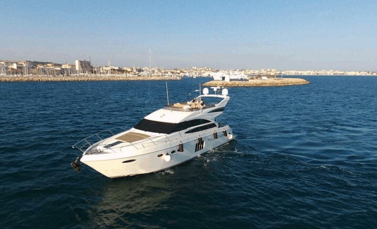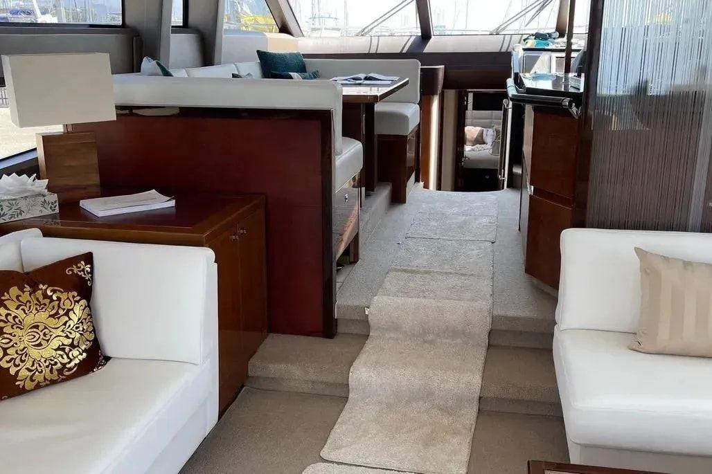 Construit en 2011, ce **Princess 64** bien-aimé a été entretenu avec une grande attention par son équipage. Elle offre un flybridge spacieux, quatre cabines sur le pont inférieur et un espace de vie principal ouvert et accueillant avec la cuisine. Sa plateforme de bain électro-hydraulique facilite le lancement et la récupération d'un jet rib de 3,25 m.