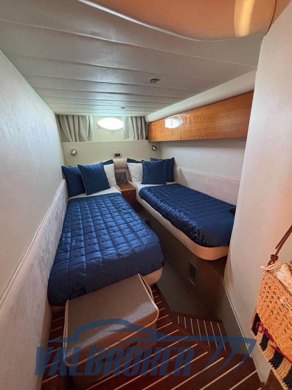 Bimini (Blu), Sellerie complète (rifatte 2020), Coussin avant (cellula chiusa), Rideaux occultants (parabrezza nera), Taud de console (Sunbrella Blu), Taud de soleil.
