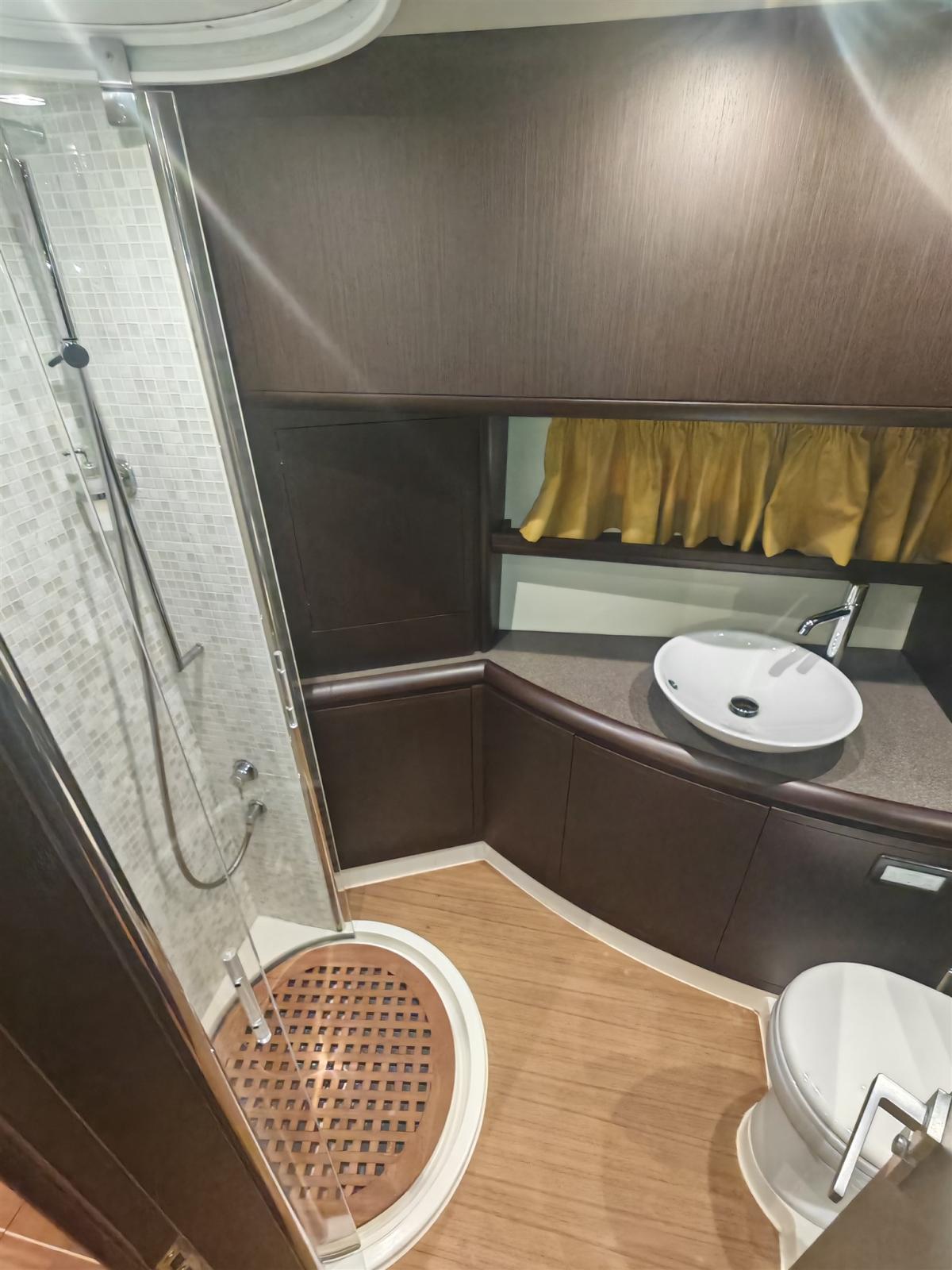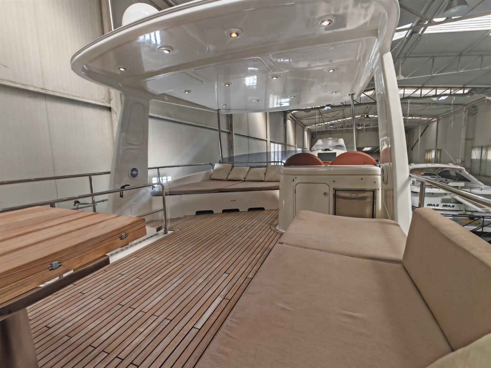 Alarme moteur, Alarme de pompe de cale, Eau sous pression, 4 Batteries (agosto 2023), Passavant en teck, Douche de cockpit, Double barre à roue, Phare de poursuite, Flaps hydrauliques, Extincteur(s) fixe(s), Indicateurs de flaps, Éclairage de courtoisie, Passerelle, Plateforme arrière (in teak abbatibile), Porte latérale (con apertura totale), Porte latérale, Cockpit en teck, Prise de quai, Onduleur, Guindeau électrique, Echelle de bain, table de cockpit, Corne, T-Top (in vtr sul fly), 2 Winch électrique.