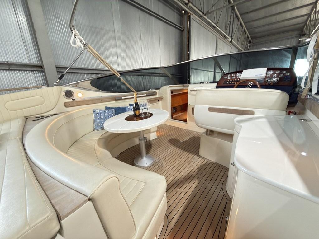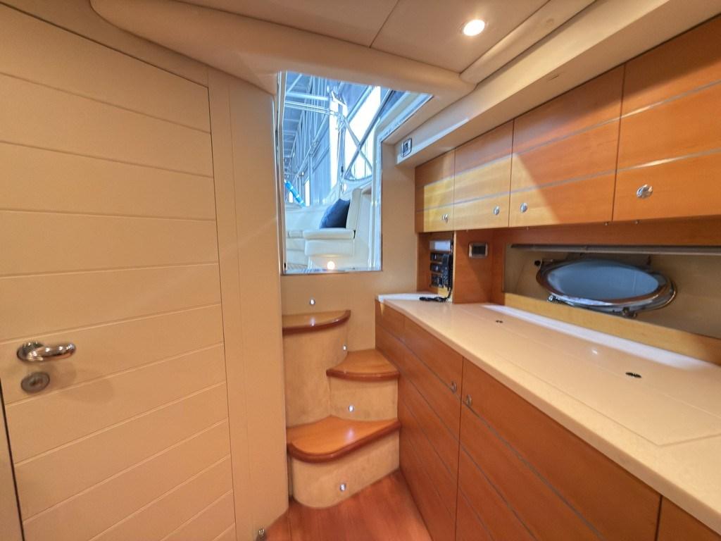 Eau sous pression, Câble d’alimentation à quai, Couleur spéciale (Fascia blu nelle fiancate), Douche de cockpit, Flaps électriques, Lavabo dans le cockpit, Éclairage de courtoisie, Passerelle (a scomparsa), Cockpit en teck, Prise de quai, Guindeau électrique.