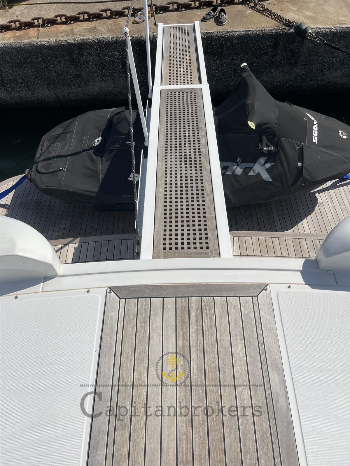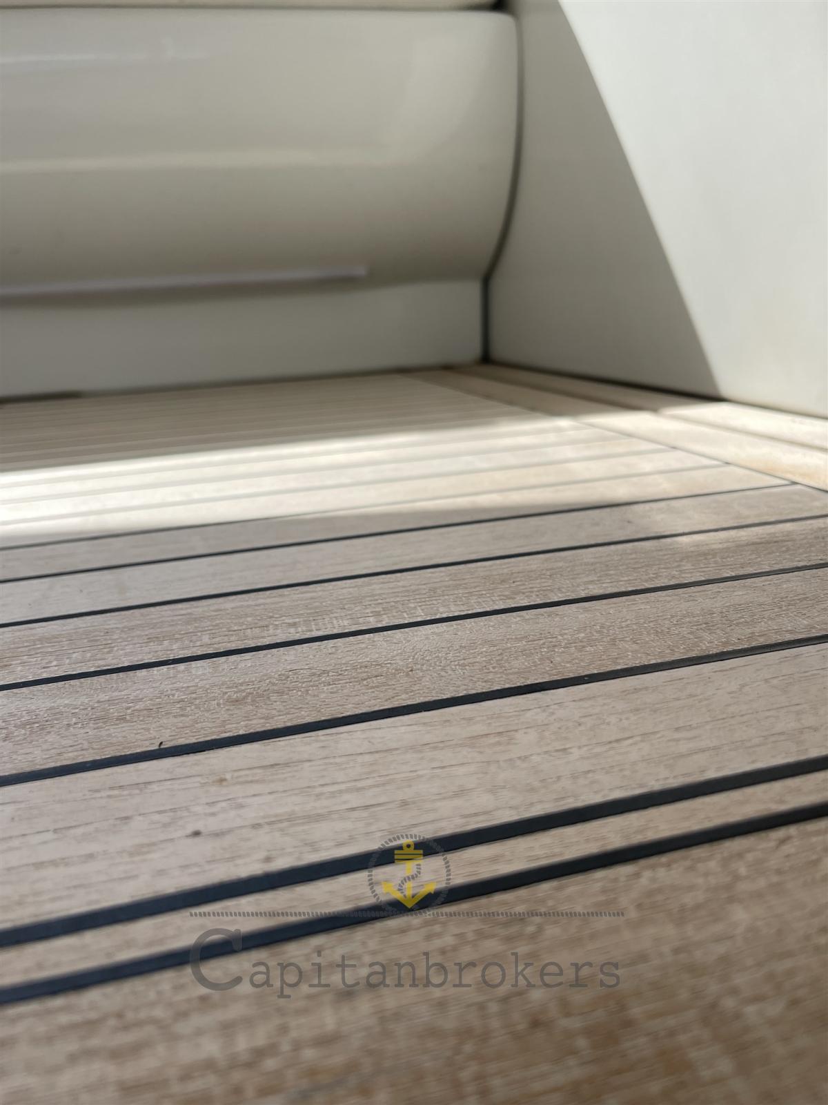 Alarme moteur, Alarme de pompe de cale, 5 Batteries, Douche de cockpit, Bossoirs (passerella), Lavabo dans le cockpit, Pompe de cale automatique, Pompe de cale manuelle, Cockpit en teck, Prise de quai, Connexion eau sous pression à quai, Guindeau électrique, Echelle de bain, Selles pour Annexe, table de cockpit, Corne.