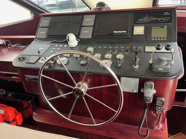 Indicateur d'angle de barre, Antenne radar, Commande électrique, DSC VHF, Plotter GPS, Panneau de commande, Siège copilote.