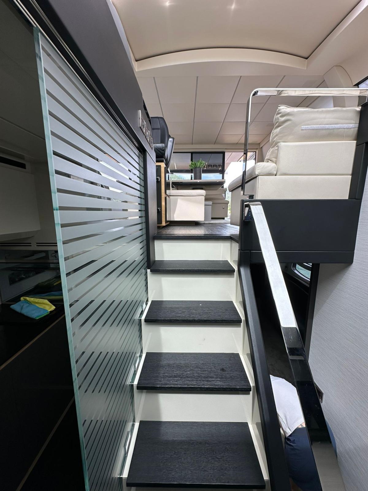 BBQ/ Grill, Ballon d'eau chaude, Coffre-fort, Air Conditionné, Connexion à internet, Dessalinisateur (IDROMAR 200 L/H), Cuve à eaux noires, 2 Convertisseur, Plancher intérieur en bois, Prises interieures 12v, Prises interieures 220v, Réservoir d'eau noire, 2 Caméra vidéo, 4 Toilettes électriques.