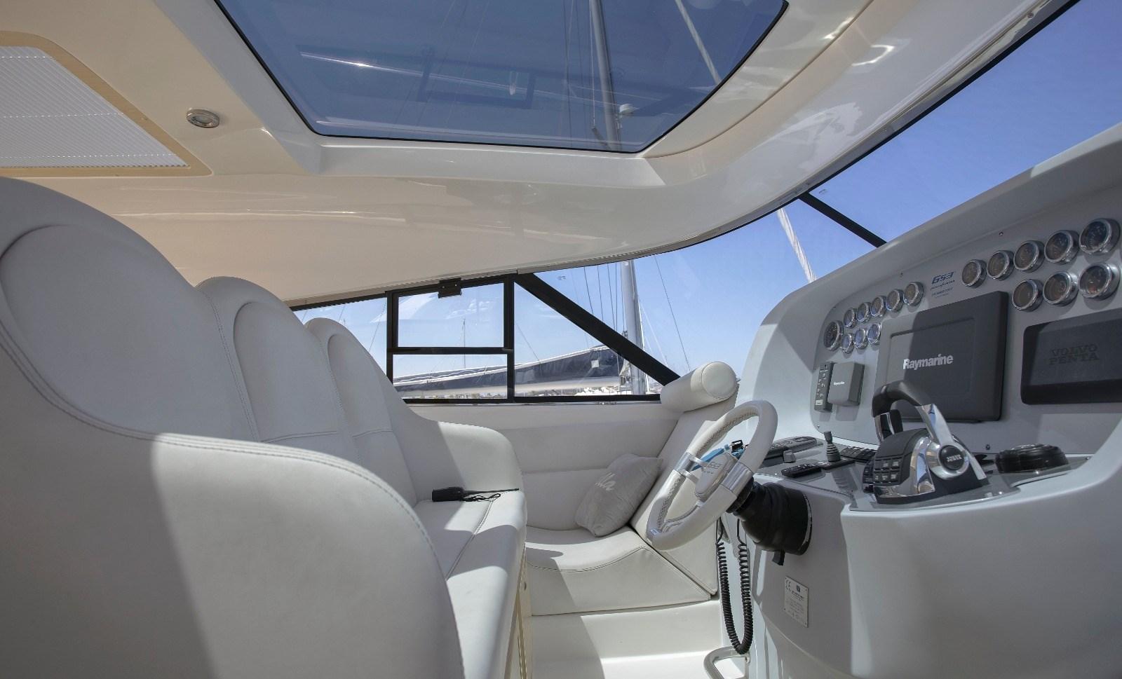 Alarme moteur, Alarme de pompe de cale, Ouverture du compartiment moteur électrique, Auto Dynamic Trim Interceptor, Eau sous pression, Trim hydraulique, Taquets pliants, Passavant en teck, Douche de cockpit, Flaps électriques, Garage à annexe, Hard top, Extincteur(s) fixe(s), Spots sous-marins, Pompe de cale automatique, Porte latérale, Cockpit en teck, Prise de quai, Guindeau électrique, table de cockpit, Annexe, Corne, T-Top, Winch électrique arrière.