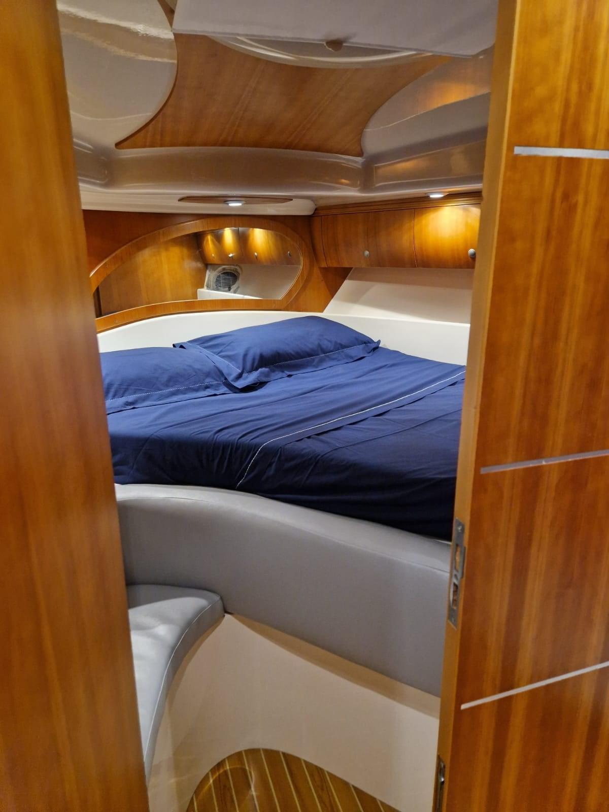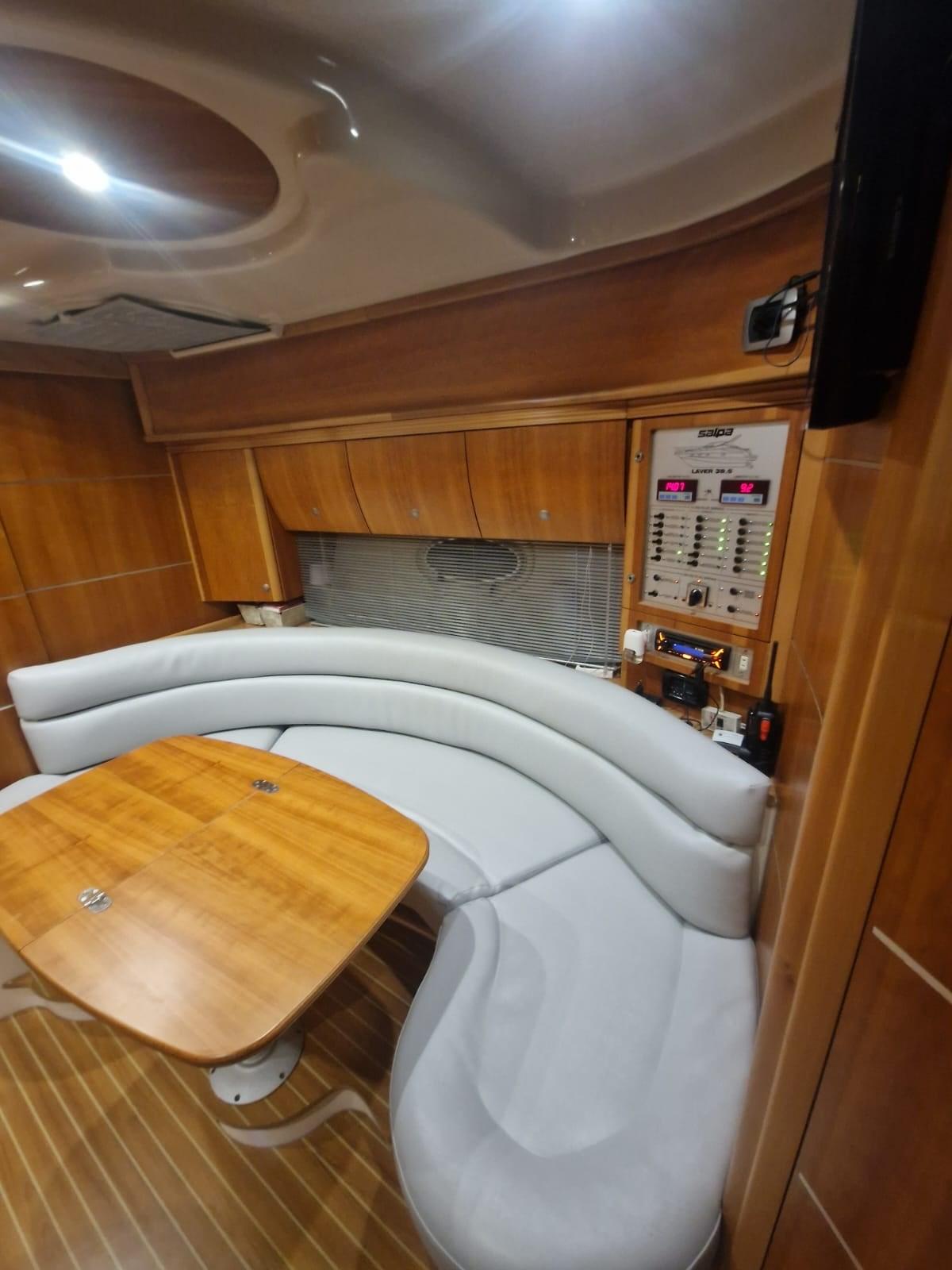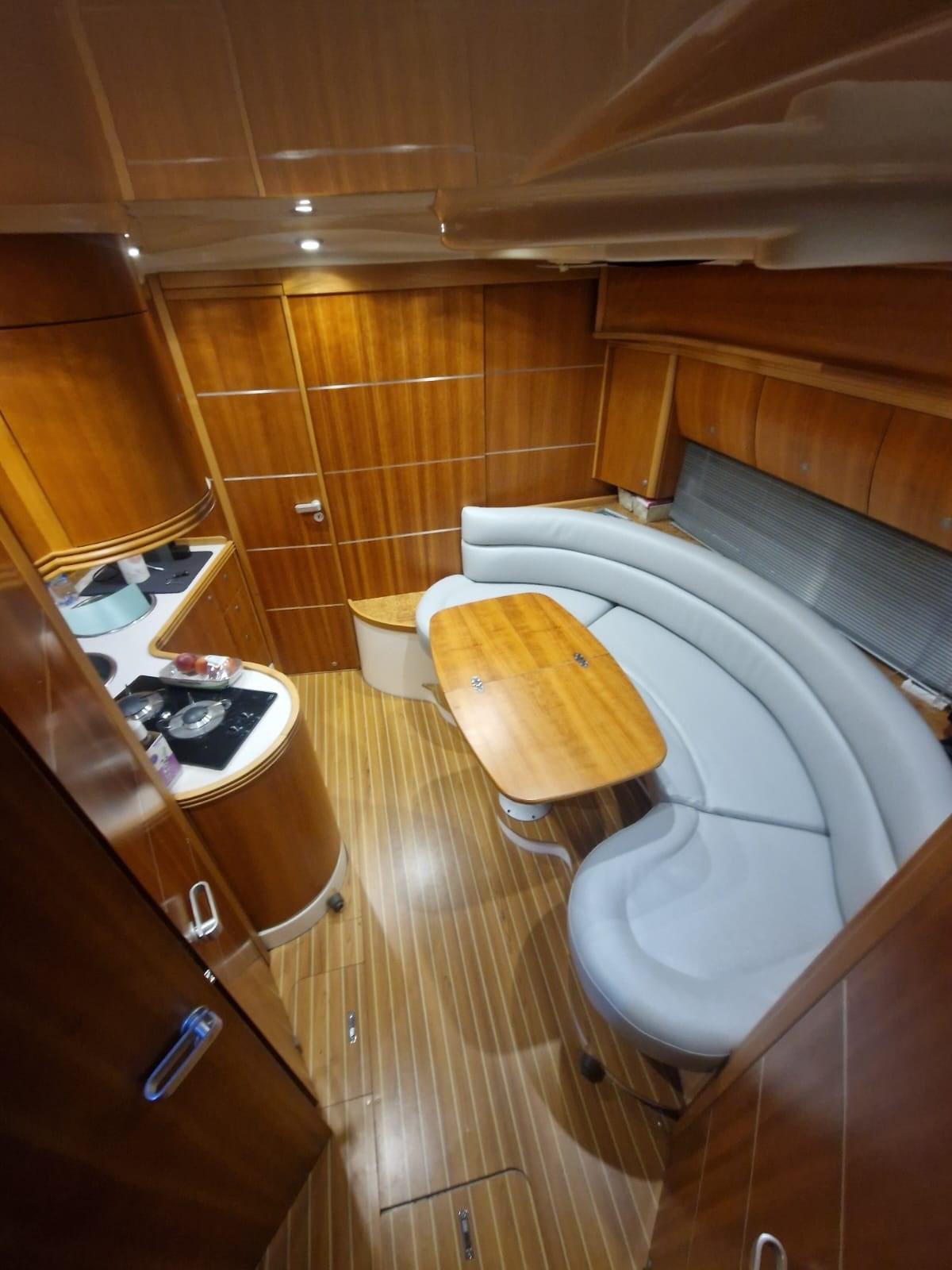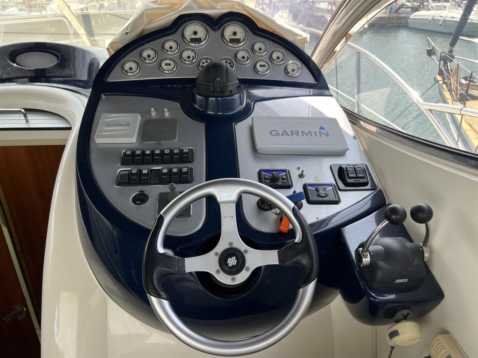 Alarme moteur, Alternateur, Eau sous pression, Couleur spéciale, Douche de cockpit, Phare de poursuite, Flaps hydrauliques, Garage à annexe, Lavabo dans le cockpit, Éclairage de courtoisie, Pompe de cale automatique, Pompe de cale manuelle, Cockpit en teck, Onduleur, Rollbar, Guindeau électrique, Echelle de bain, table de cockpit, Table pliante de salon, Filières avec sortie latèrale, Corne.