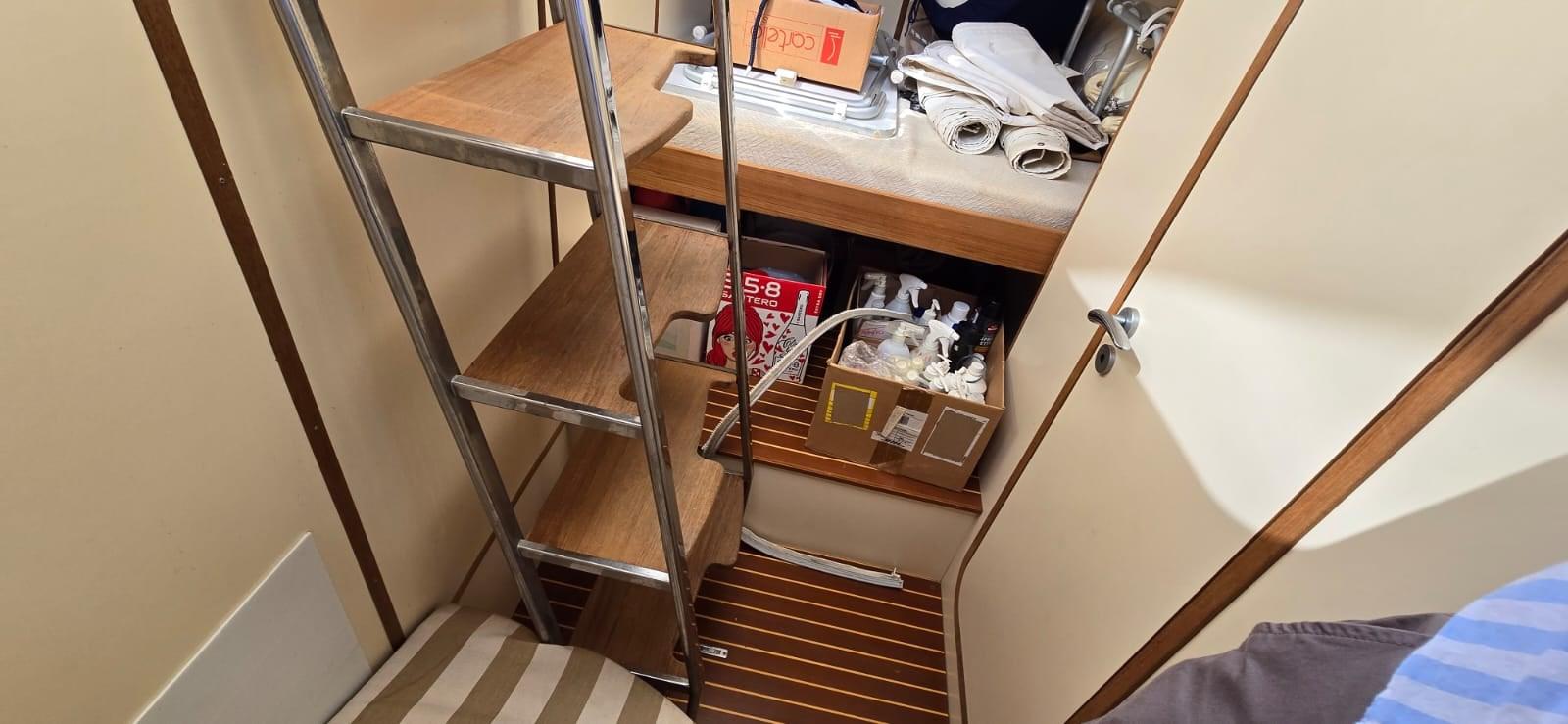 Alarme gaz, Alarme moteur, Alarme de pompe de cale, Ligne d'arbre de rechange, Eau sous pression, Passavant en teck, Douche de cockpit, Hard top, Extincteur(s) fixe(s), Pompe de cale automatique, Pompe de cale manuelle, Cockpit en teck, Prise de quai, Guindeau électrique, Corne.