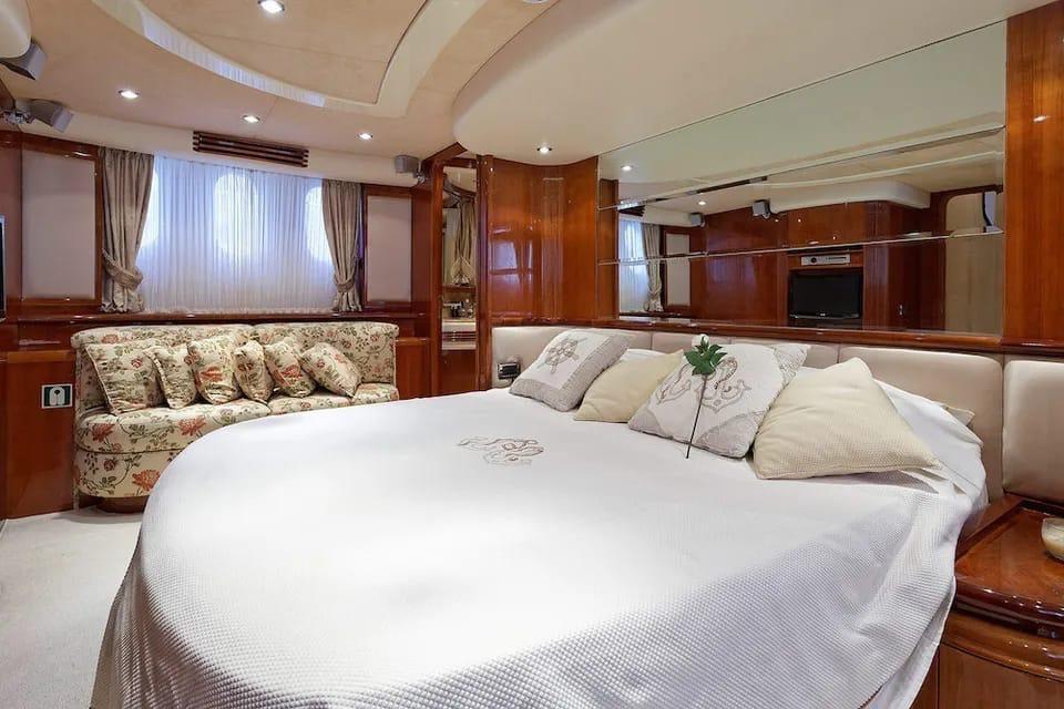 Alarme gaz, Alarme moteur, Alarme de pompe de cale, Eau sous pression, Passavant en teck, Douche de cockpit, Flaps hydrauliques, Grue de flybridge, Passerelle, Porte latérale, Cockpit en teck, Guindeau Hydraulique, Echelle de bain, table de cockpit, Winch électrique arrière, Winch électrique avant.