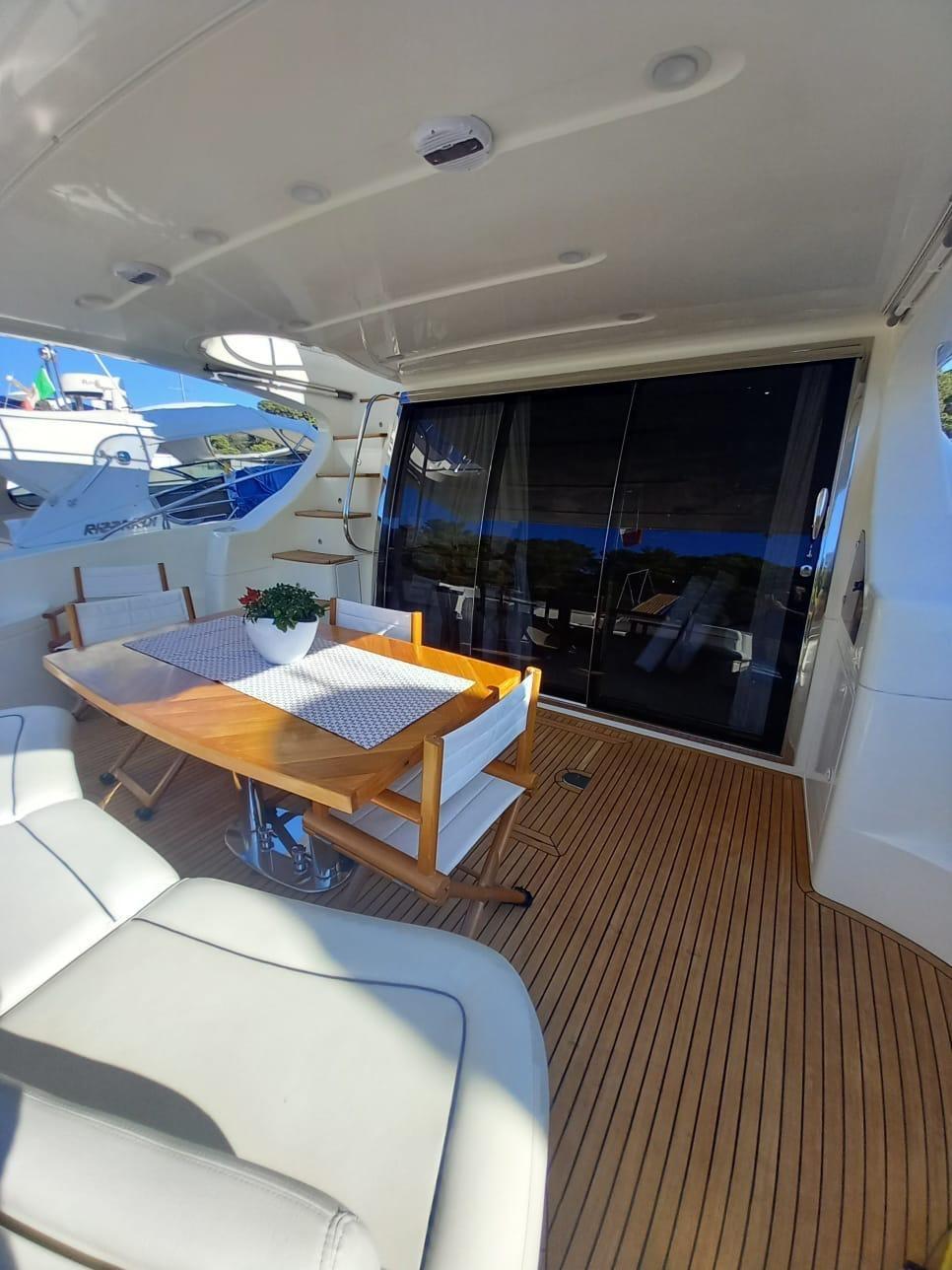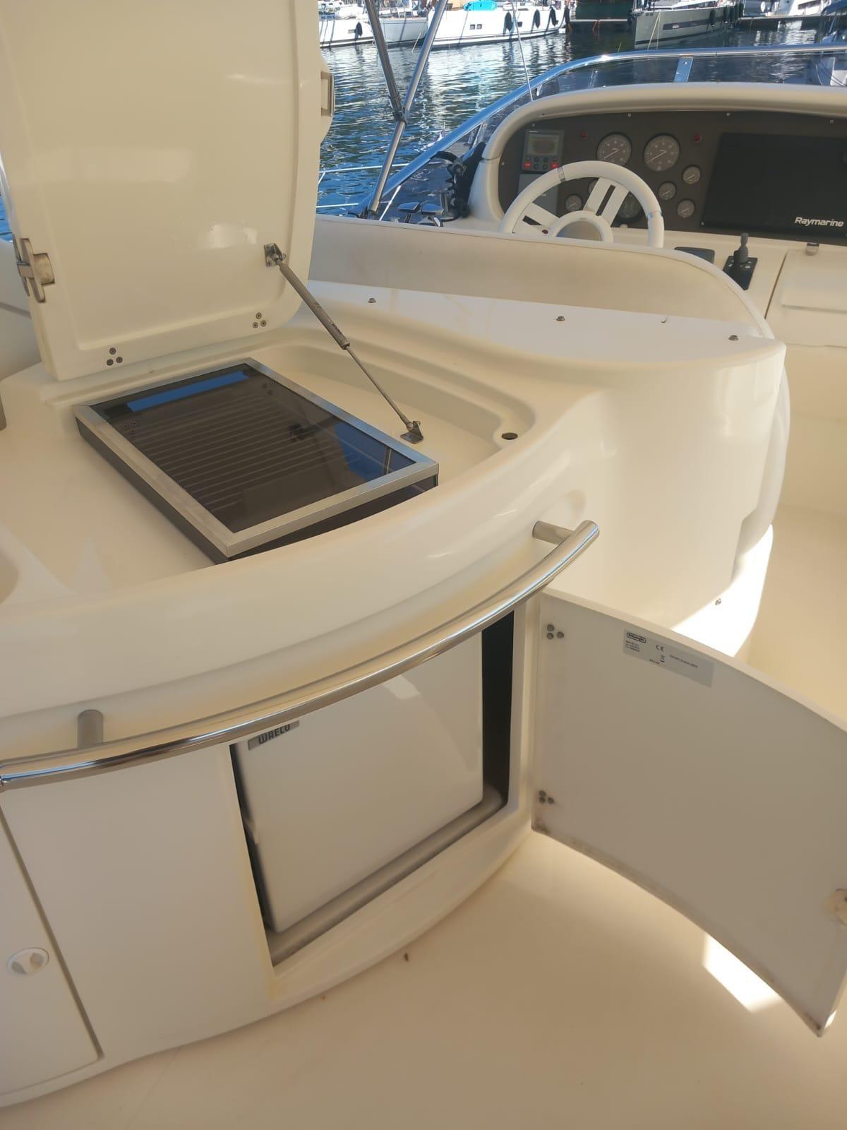 Alarme gaz, Alarme moteur, Alarme de pompe de cale, Eau sous pression, Douche de cockpit, Flaps hydrauliques, Extincteur(s) fixe(s), Indicateurs de flaps, Lavage de chaine, Éclairage de courtoisie, Spots sous-marins, Passerelle, Plateforme arrière, Pompe de cale automatique, Pompe de cale manuelle, Cockpit en teck, Prise de quai, Guindeau Hydraulique, Echelle de bain, Corne, Winch électrique arrière.